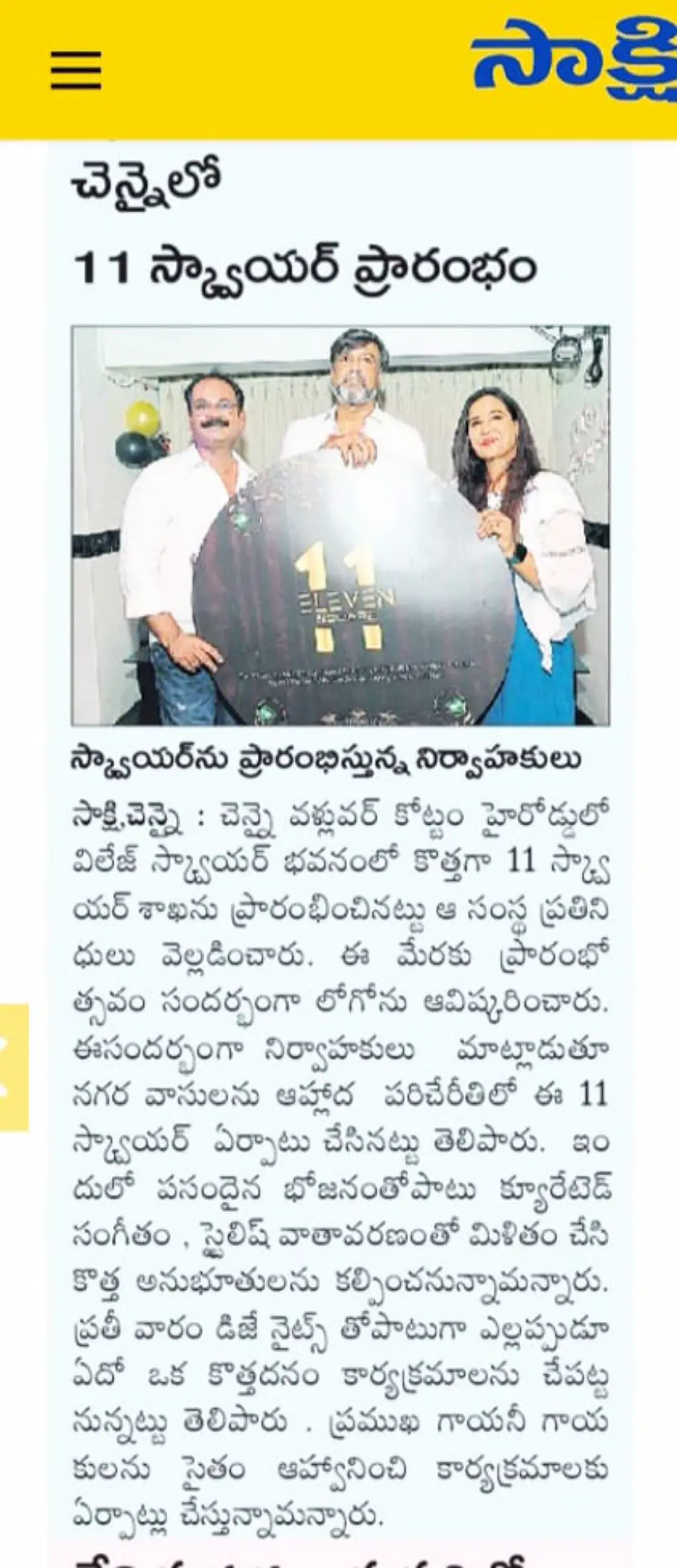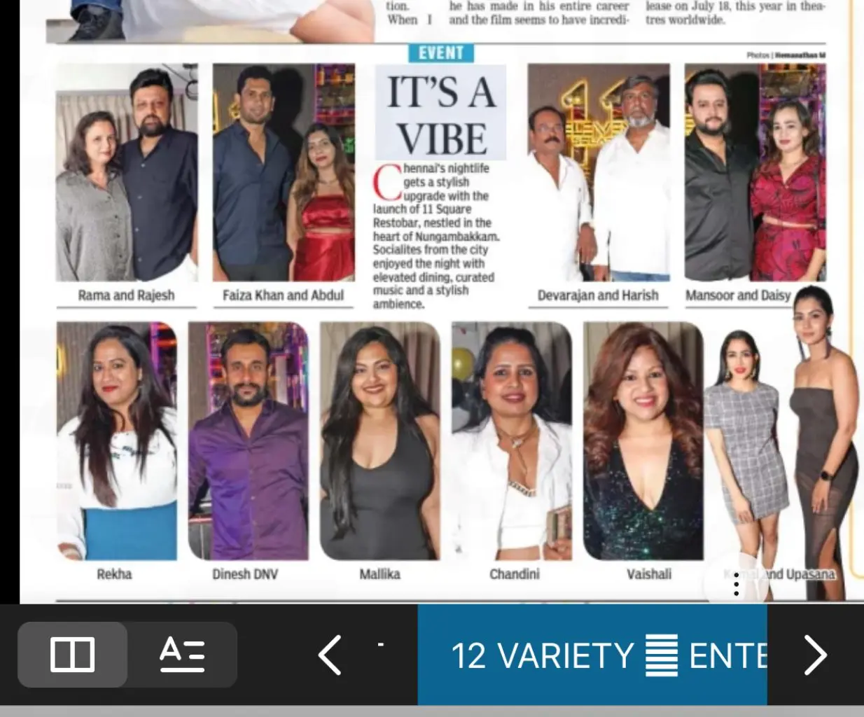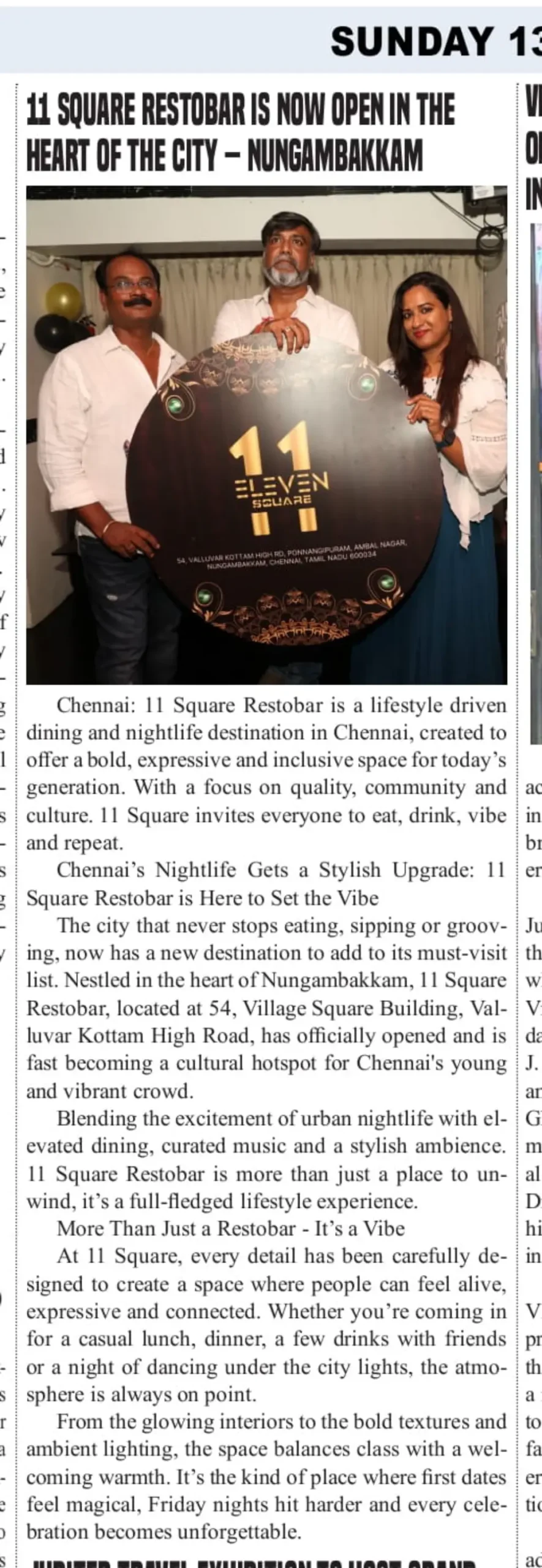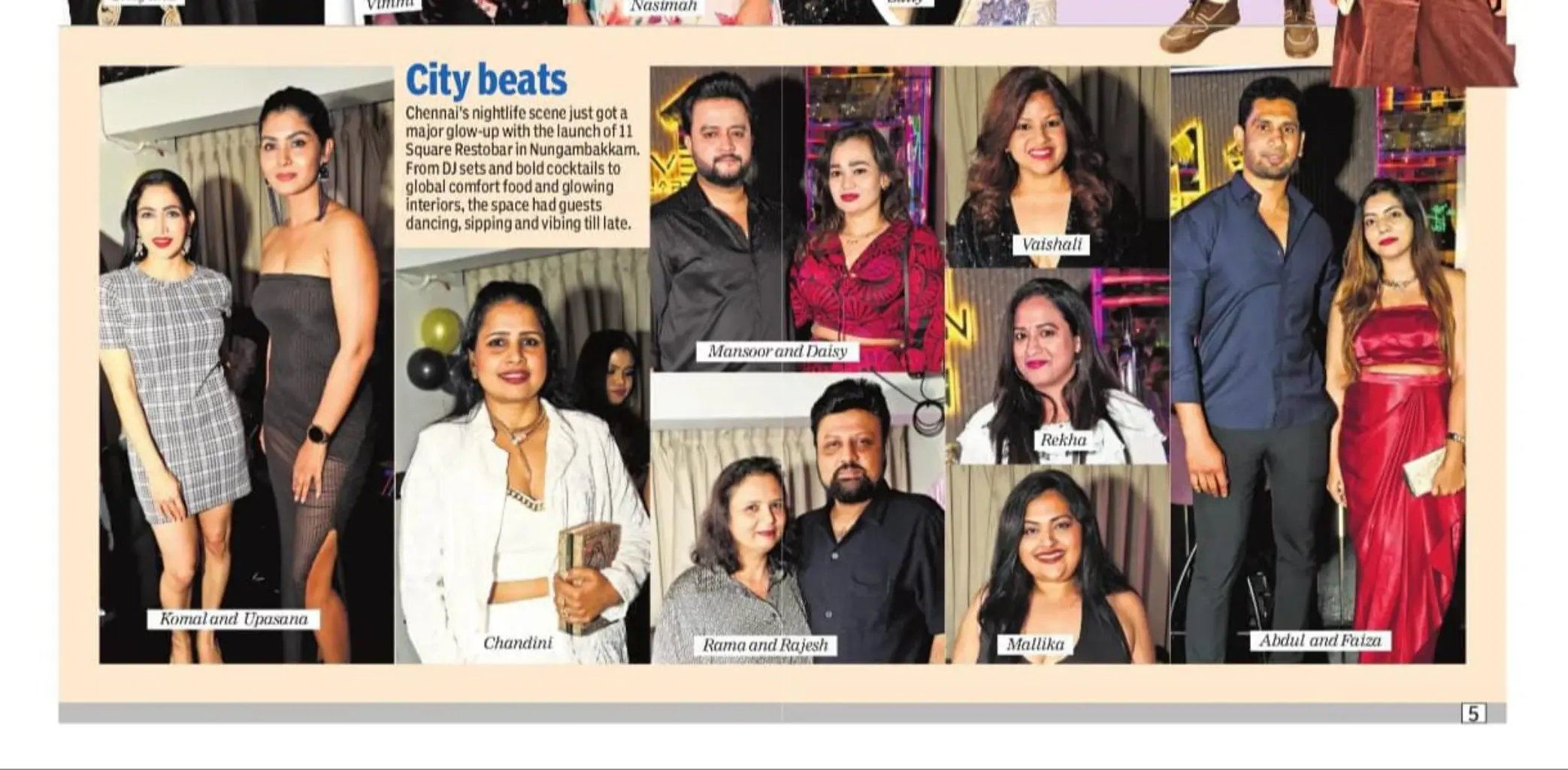 We extend our thanks to the media houses who featured the launch of 11 Square Restobar, helping to amplify the excitement and energy of the venue across Chennai and beyond.