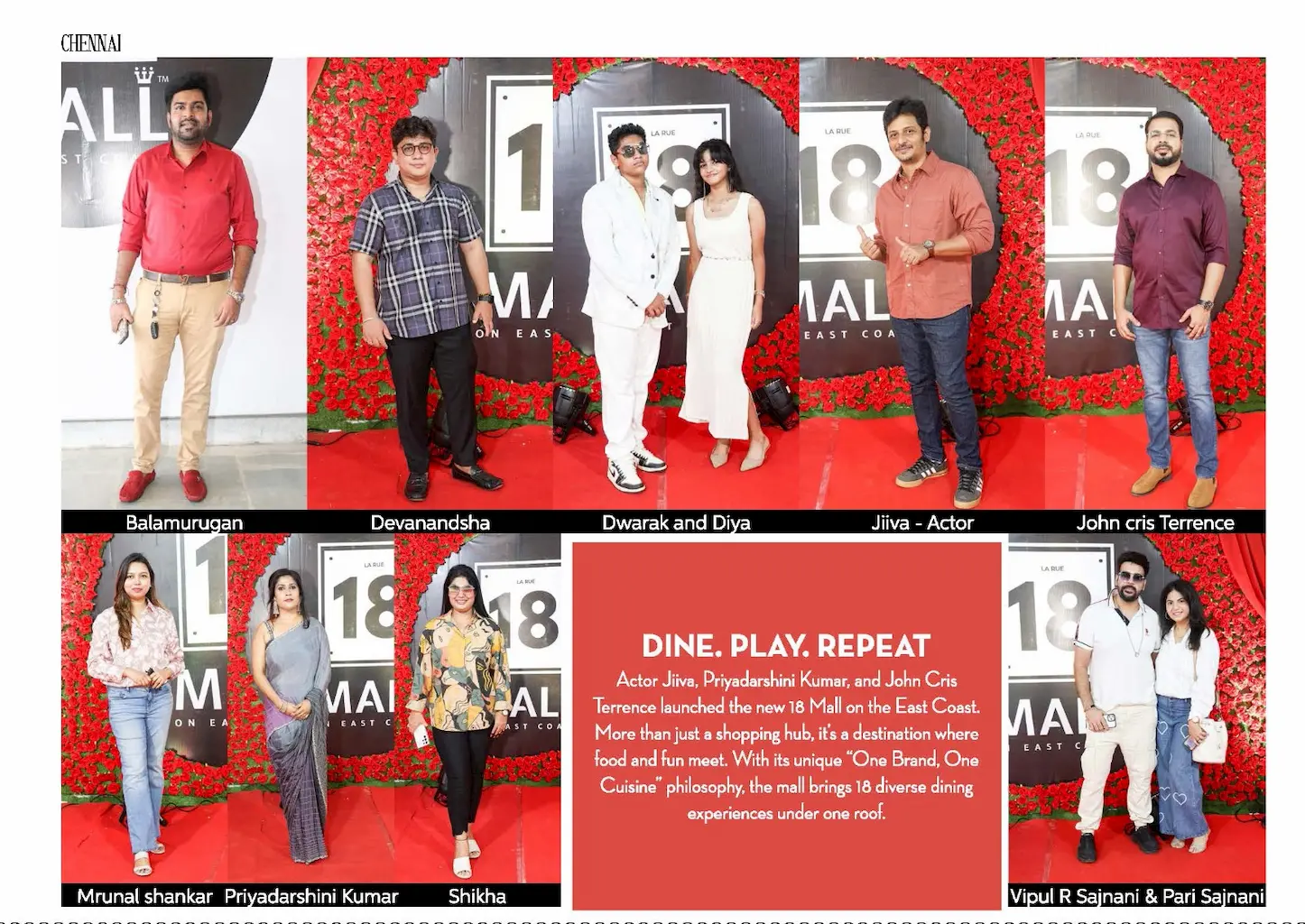 The much-awaited pre-launch of 18 Mall took place on Monday, August 4th, 2025, led by Actor Jeeva, Priyadarshini Kumar, and John Cris Terrence. Positioned as the East Coast’s newest 18 Cuisine experience and entertainment landmark, 18 Mall is designed as a vibrant hub for families and food enthusiasts alike.