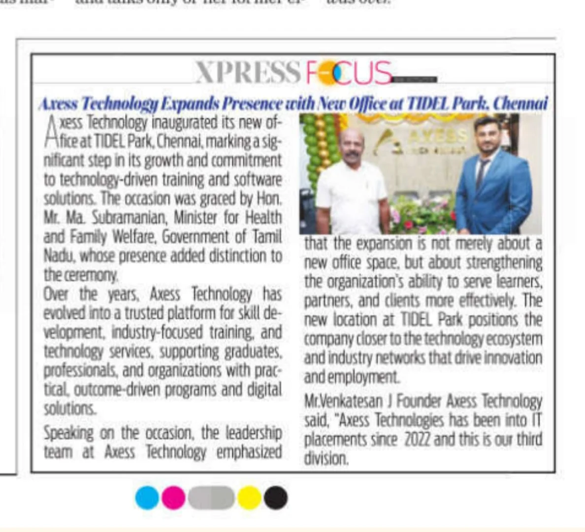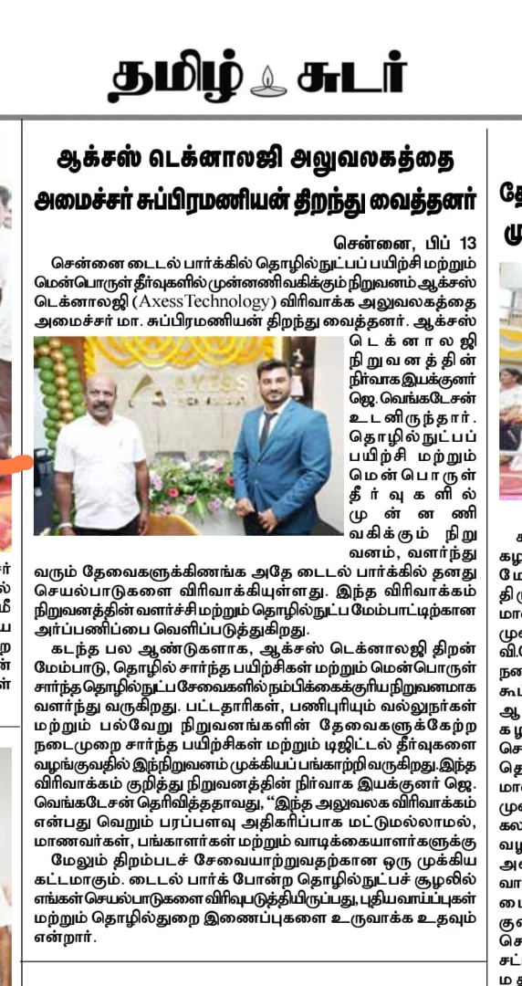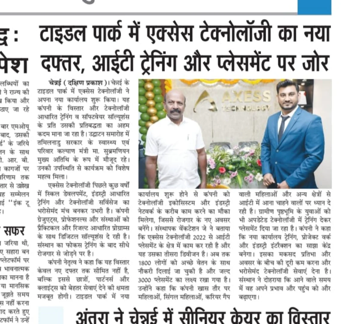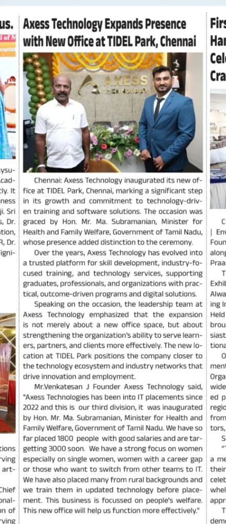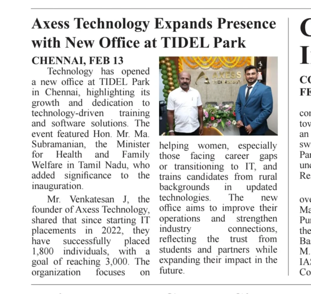 Axess Technology Expands Presence with New Office at TIDEL Park, Chennai- Media Coverage