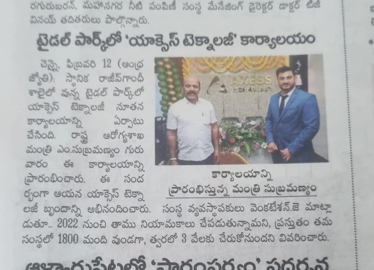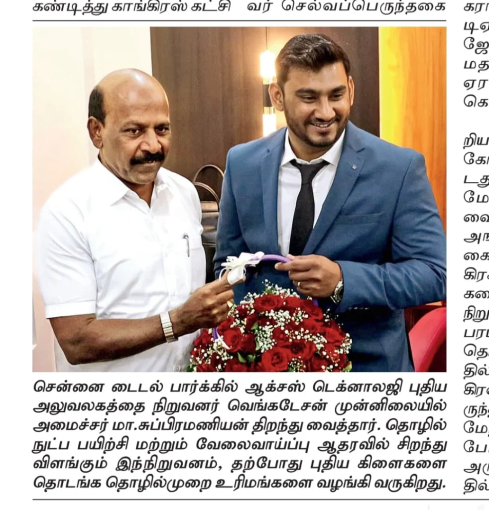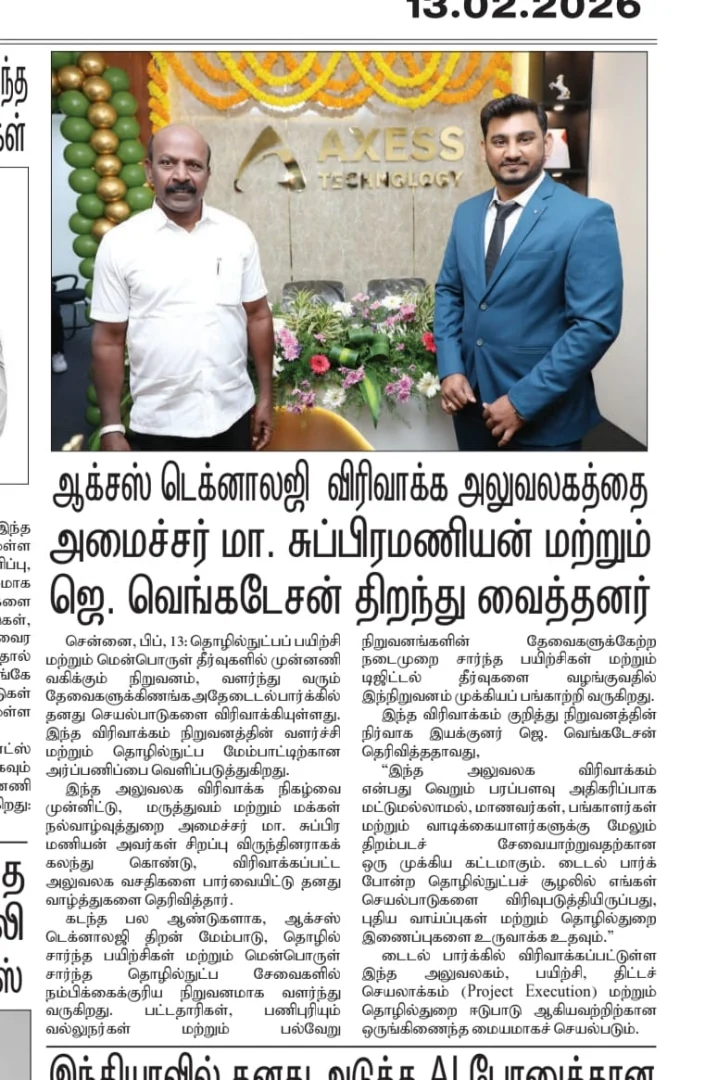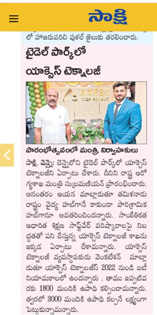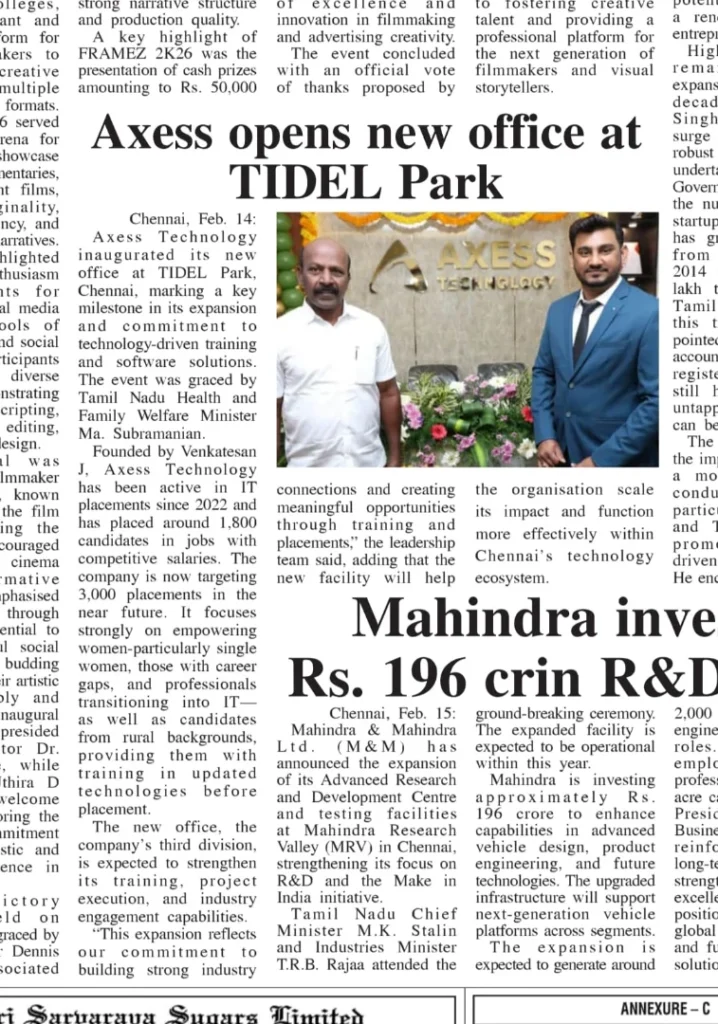 Axess Technology Expands Presence with New Office at TIDEL Park, Chennai- Media Coverage