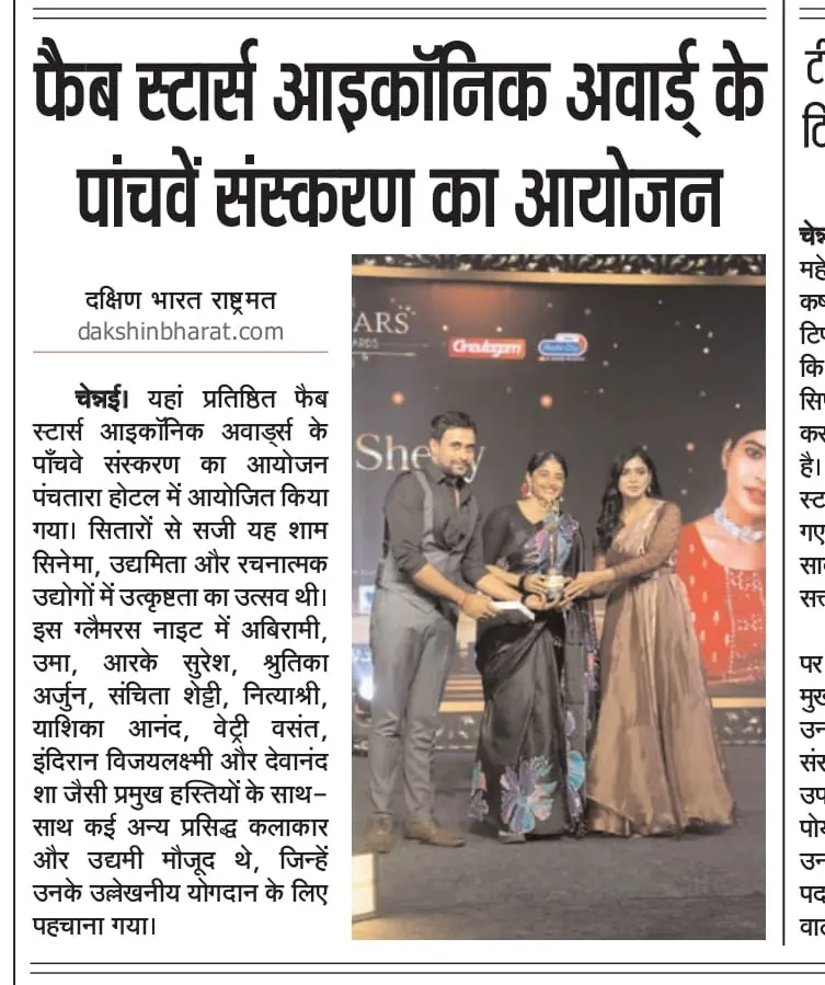 The grand 5th edition of the Fab Stars Iconic Awards took place at the prestigious ITC Grand Chola, Chennai, celebrating excellence in cinema, entrepreneurship, and creative industries.