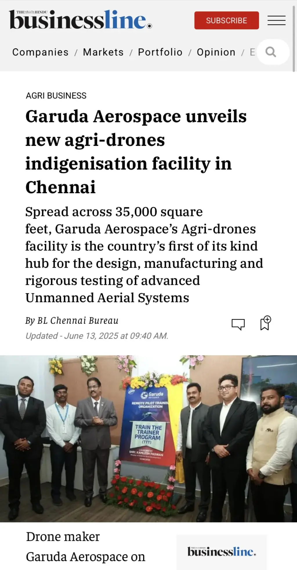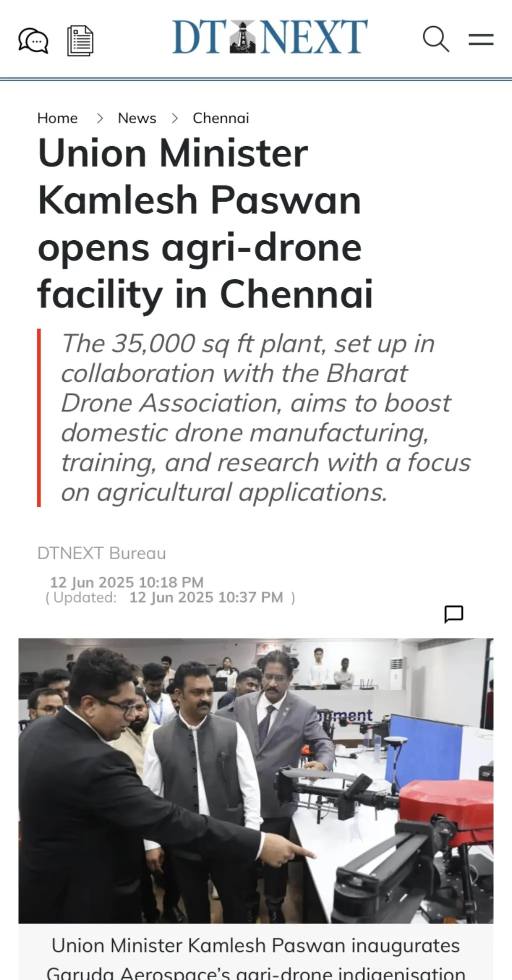 The inauguration of India’s first Agri-Drone Indigenization Facility, the rollout of 300 Centres of Excellence, and the launch of the DGCA-approved Train the Trainer (TTT) program received significant attention across major national and regional outlets.