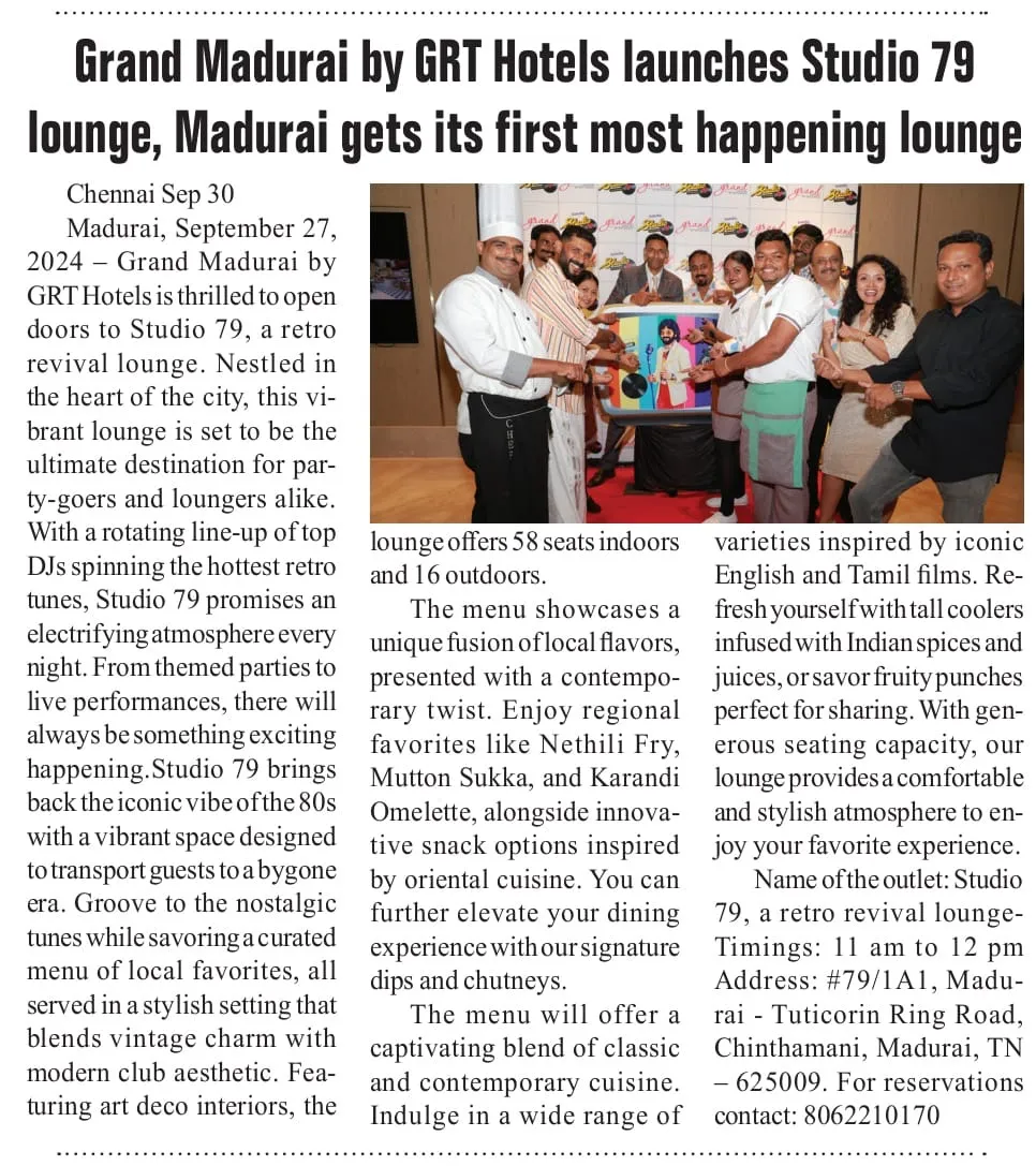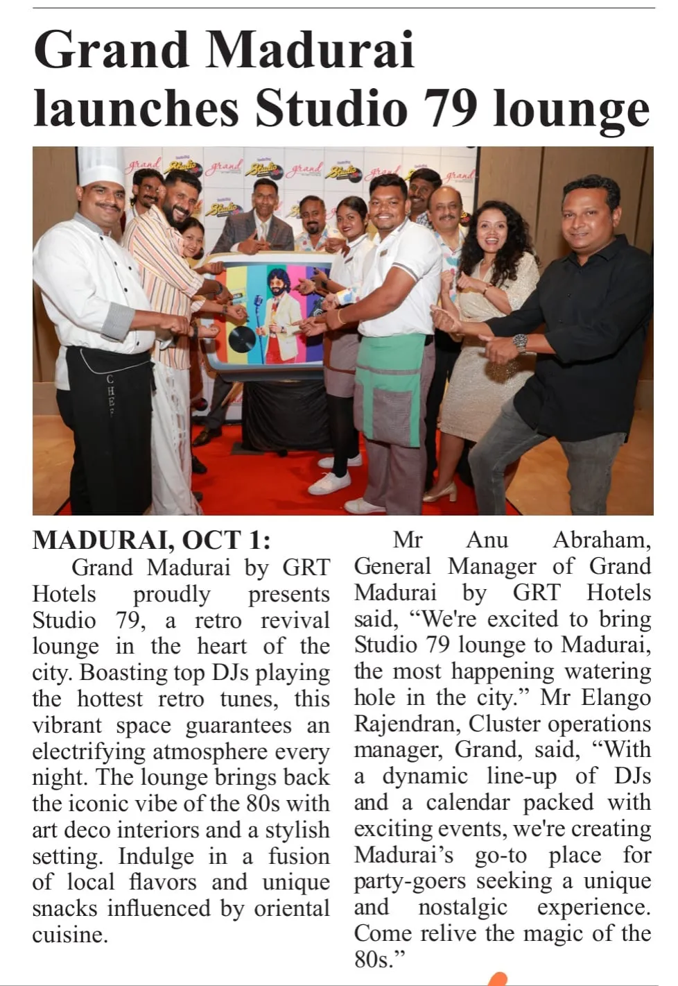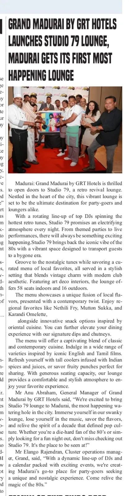 Grand Madurai by GRT Hotels launches Studio 79 lounge, Madurai gets its first most happening lounge #EventNexusPR #pr #GRTHotels #Madurai #launches #Studio #lounge #Happening , Sincerely Thank you for all the support press & Media Madurai Media people.