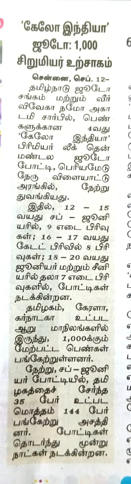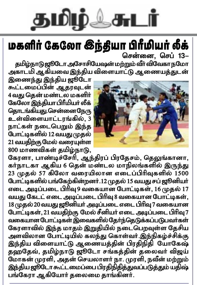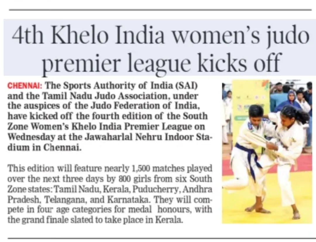 Tamil Nadu Judo Association and Veer Viveka Namo Academy in collaboration with Sports Authority of India launched the 4th Khelo India Women’s Premier League South Zone with the support of Judo Federation of India.