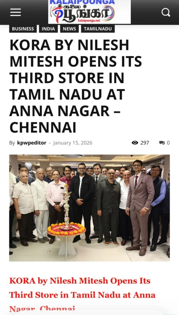 KORA by Nilesh Mitesh Expands Chennai Presence with Third Tamil Nadu Store in Anna Nagar