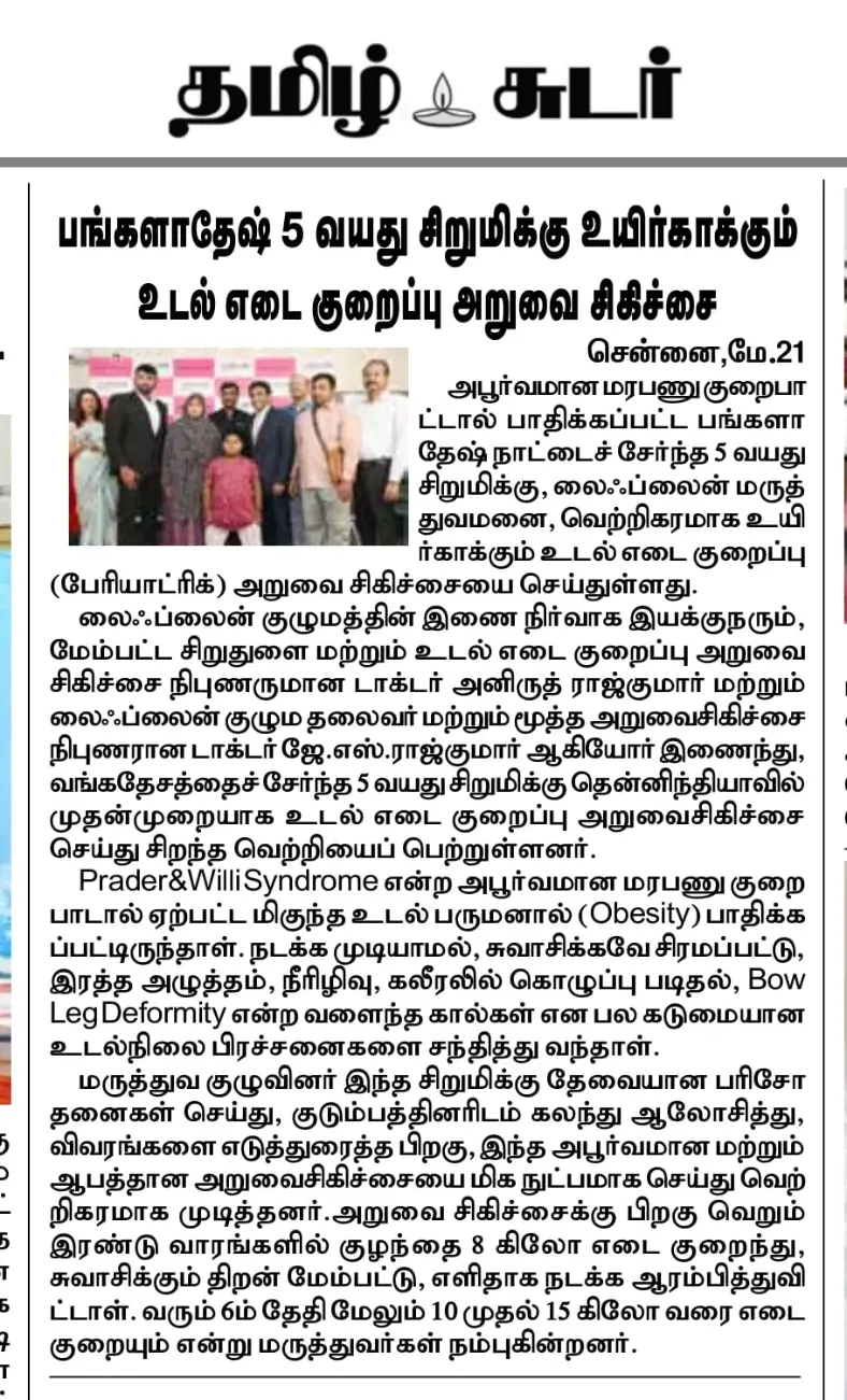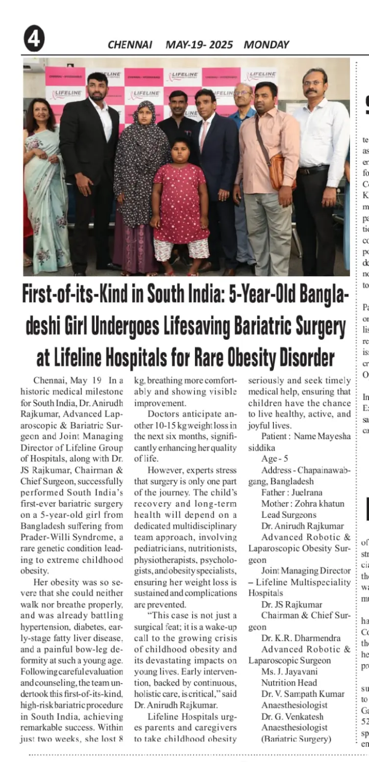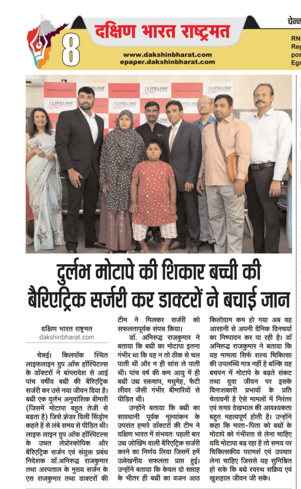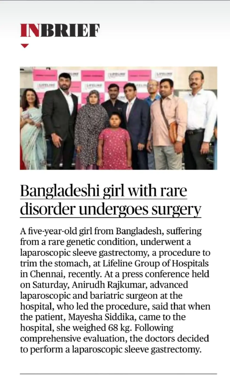 Strategic media outreach played a key role in bringing widespread national and regional attention to this milestone, reinforcing Lifeline Hospitals’ position as a leader in pediatric and bariatric surgery in South Asia.