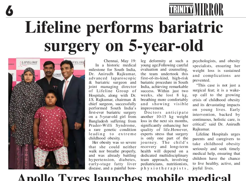 Strategic Media Coverage for Lifeline Hospitals’ Landmark Pediatric Bariatric Surgery in South India