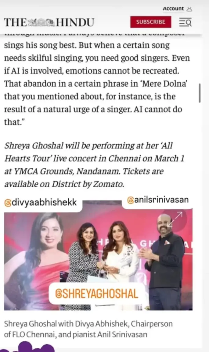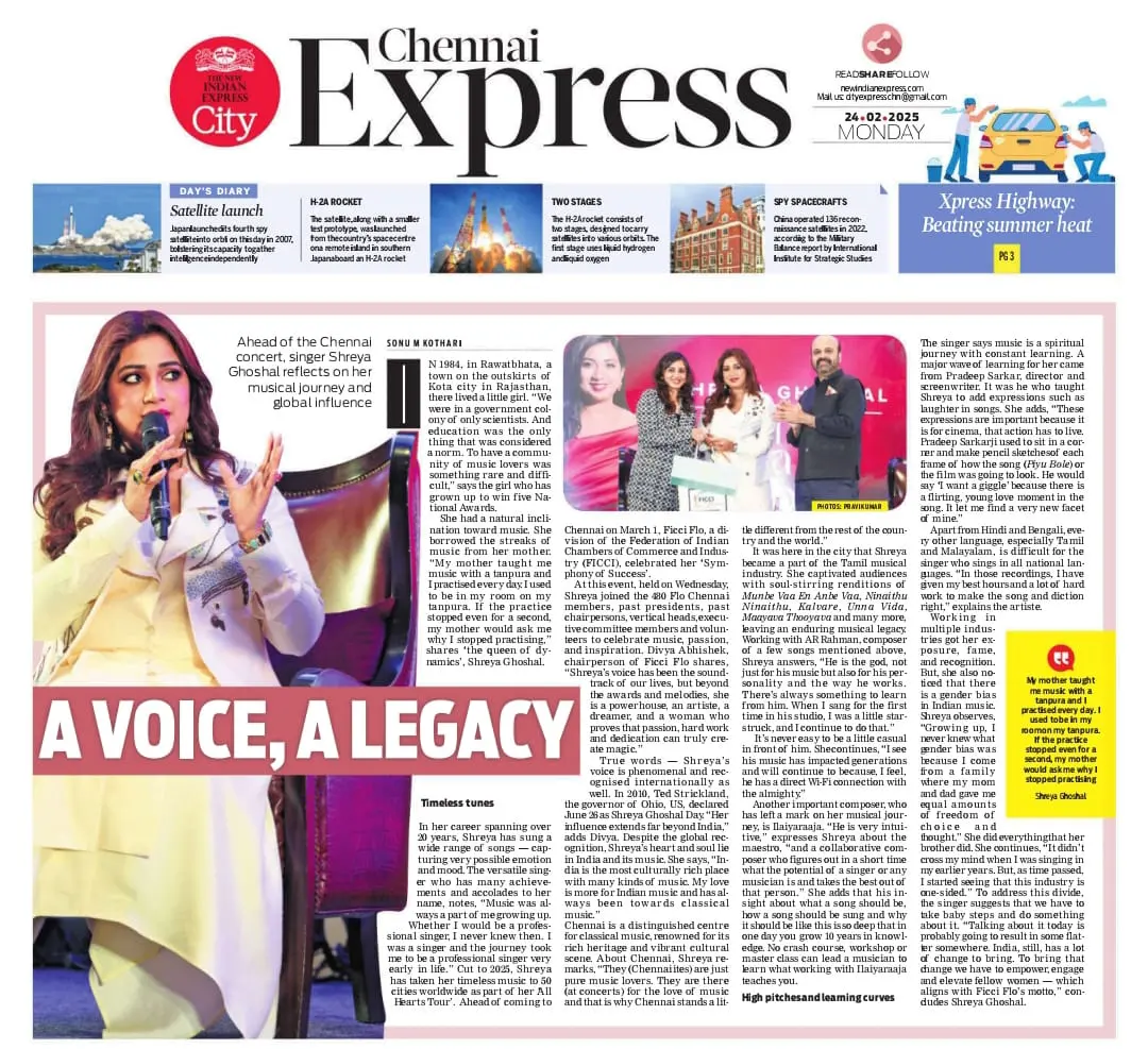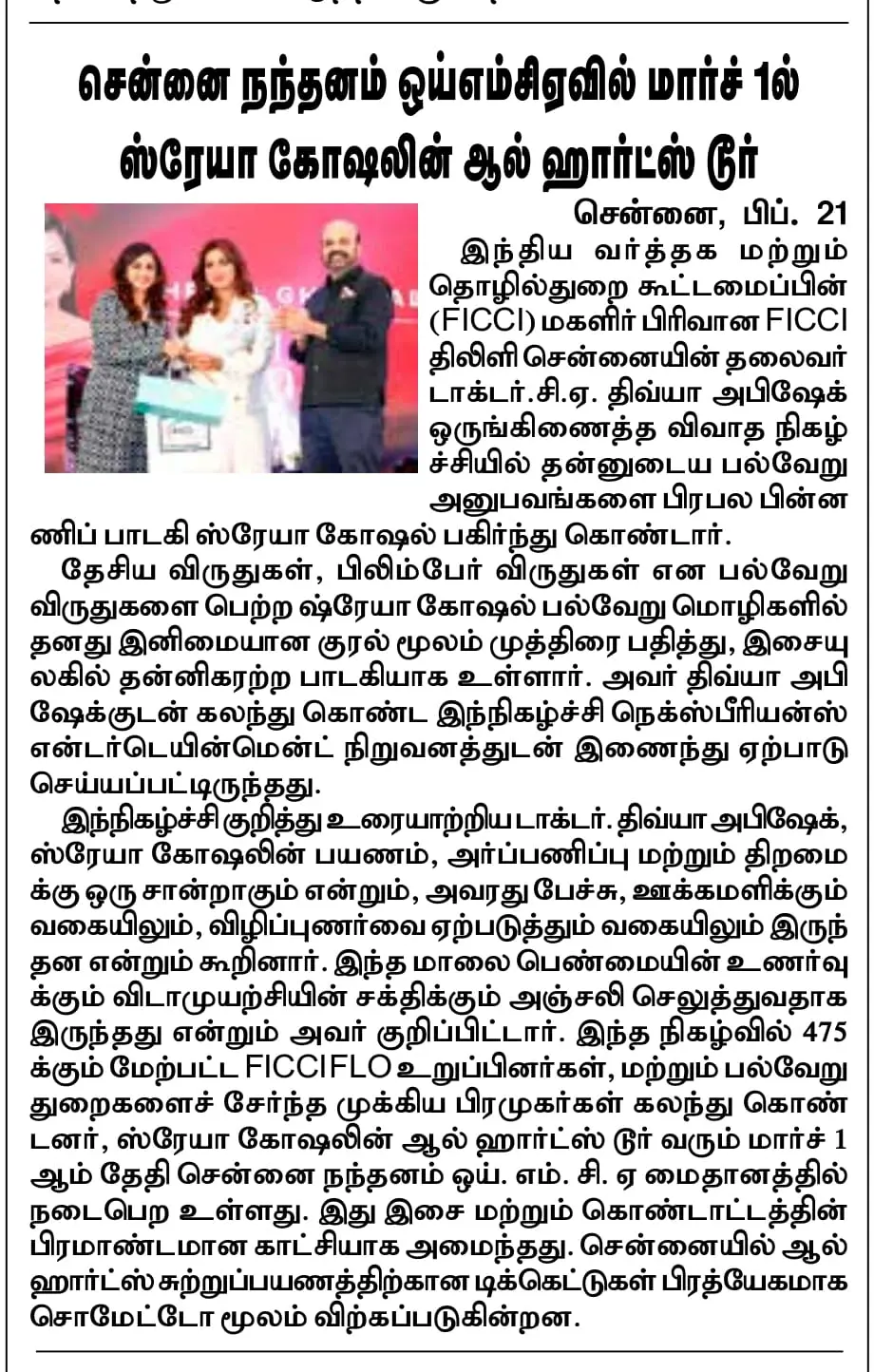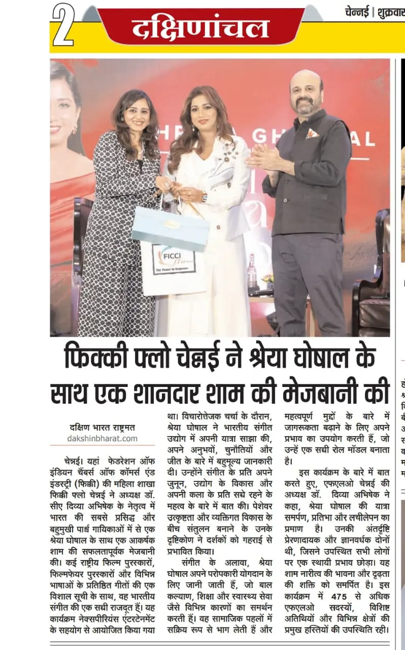 Media Coverage Report – FICCI FLO Chennai Hosts a Spectacular Evening with Shreya Ghoshal