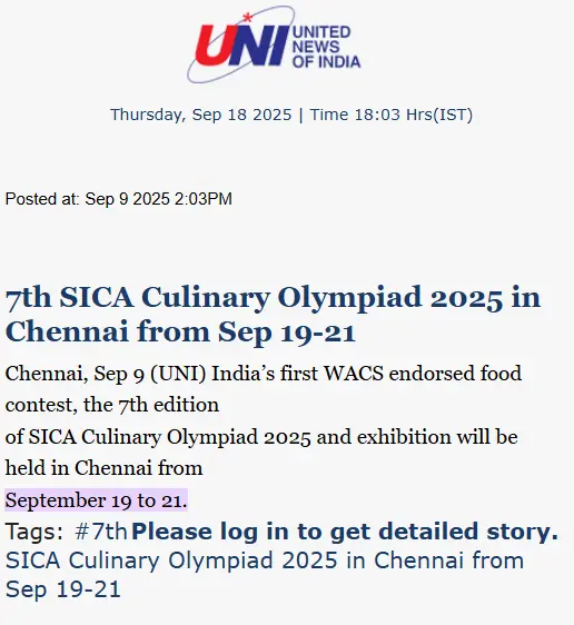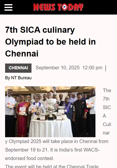 The 7th Edition of the SICA Culinary Olympiad 2025, India’s first WACS-endorsed food competition, was successfully held from 19th to 21st September 2025 at Chennai Trade Centre, alongside the regional edition of AAHAR International Food Fair 2025, Chennai.