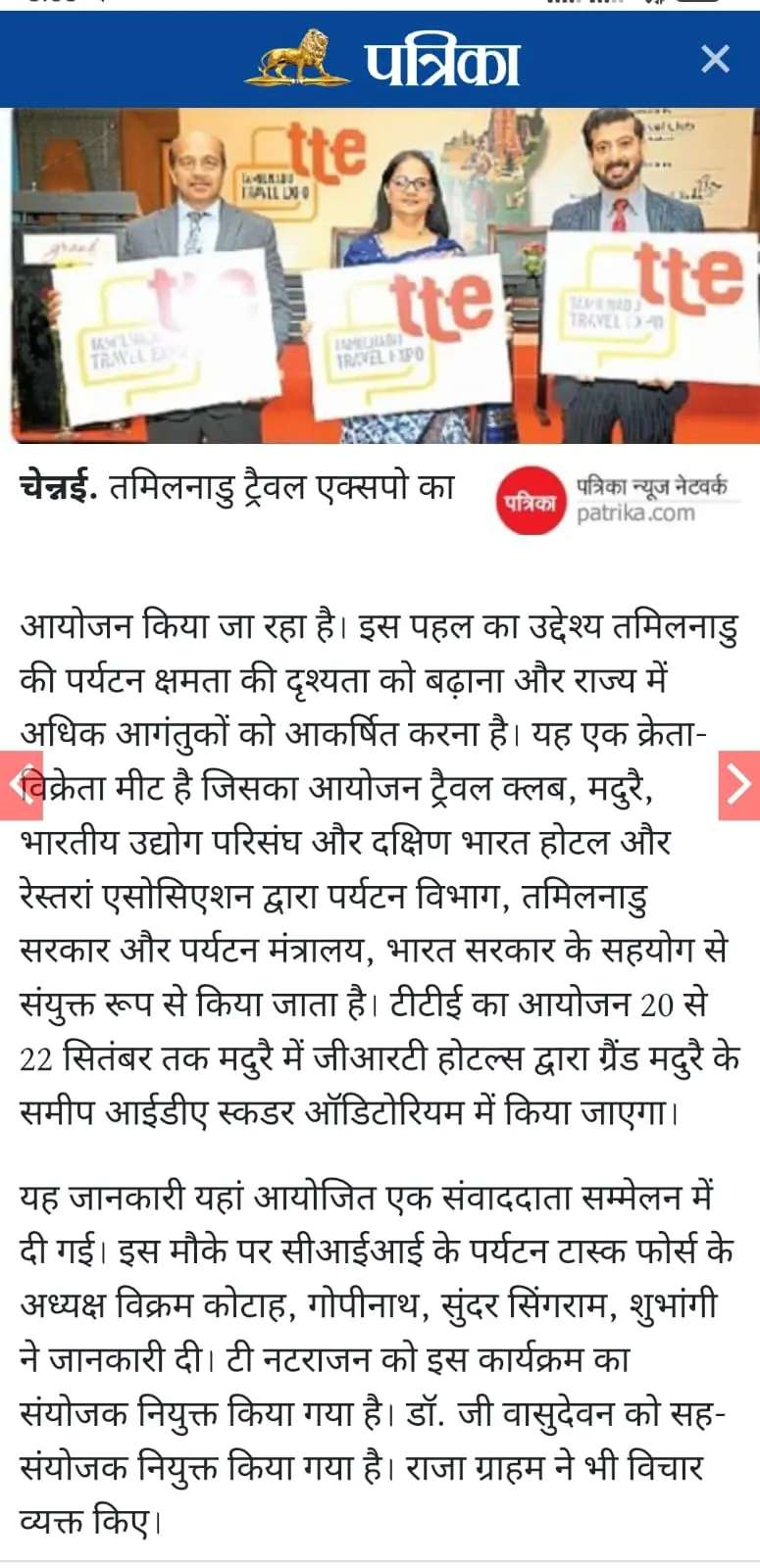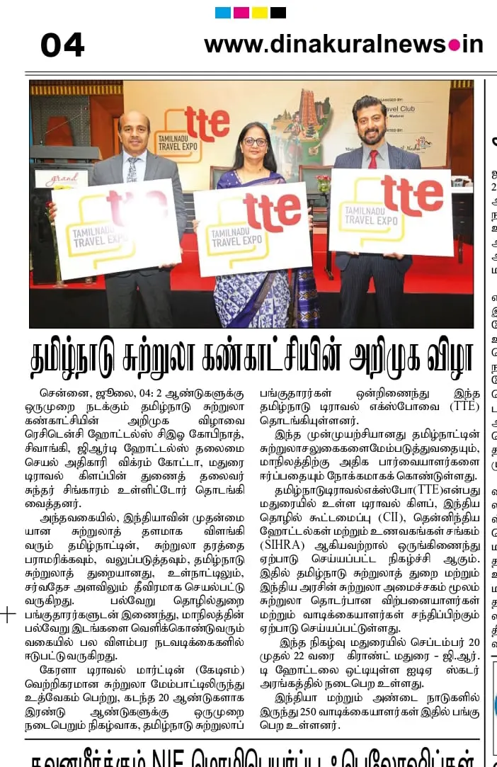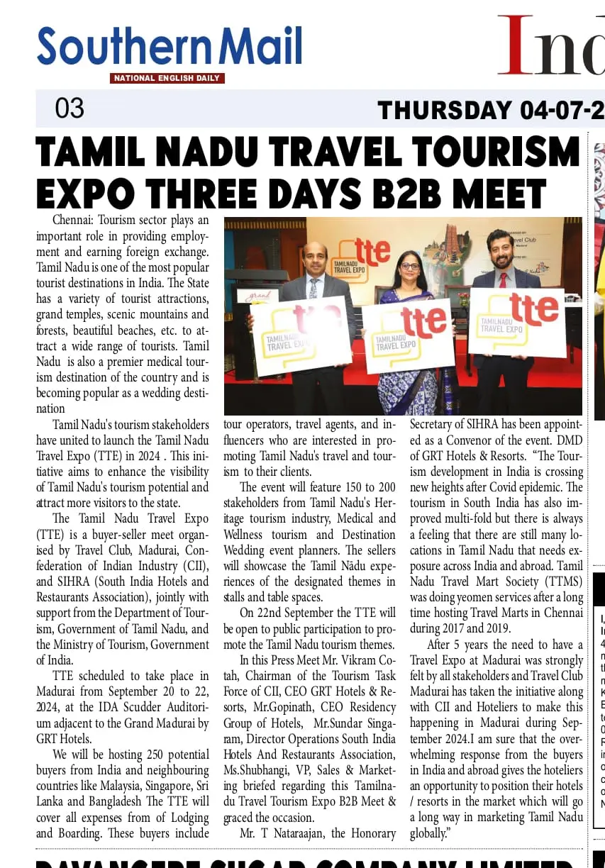 The success of the Tamil Nadu Travel Expo, held from September 20-22, 2024, in Madurai, owes much to the extensive and insightful coverage provided by the press and media. Your reports have helped highlight: