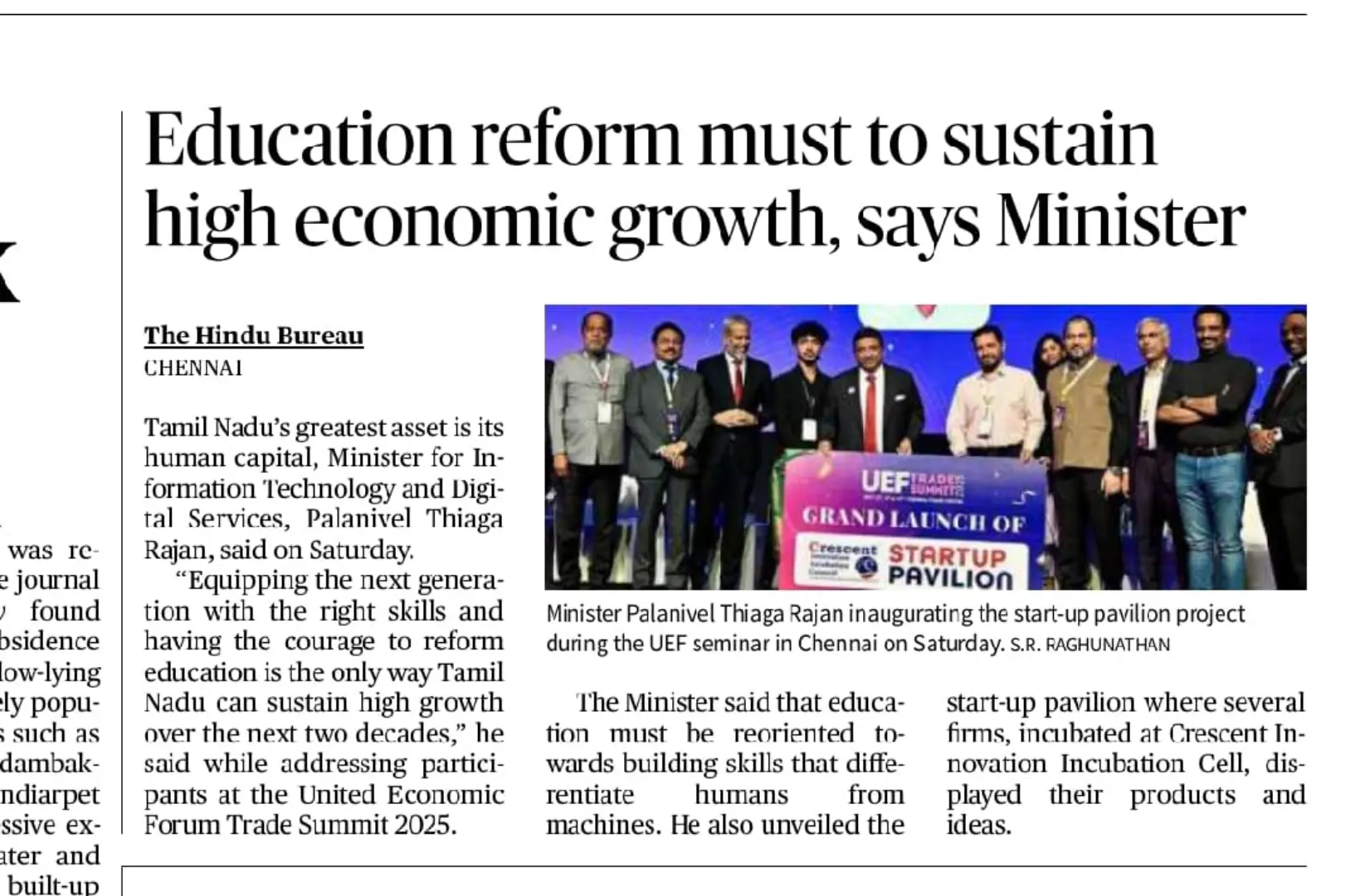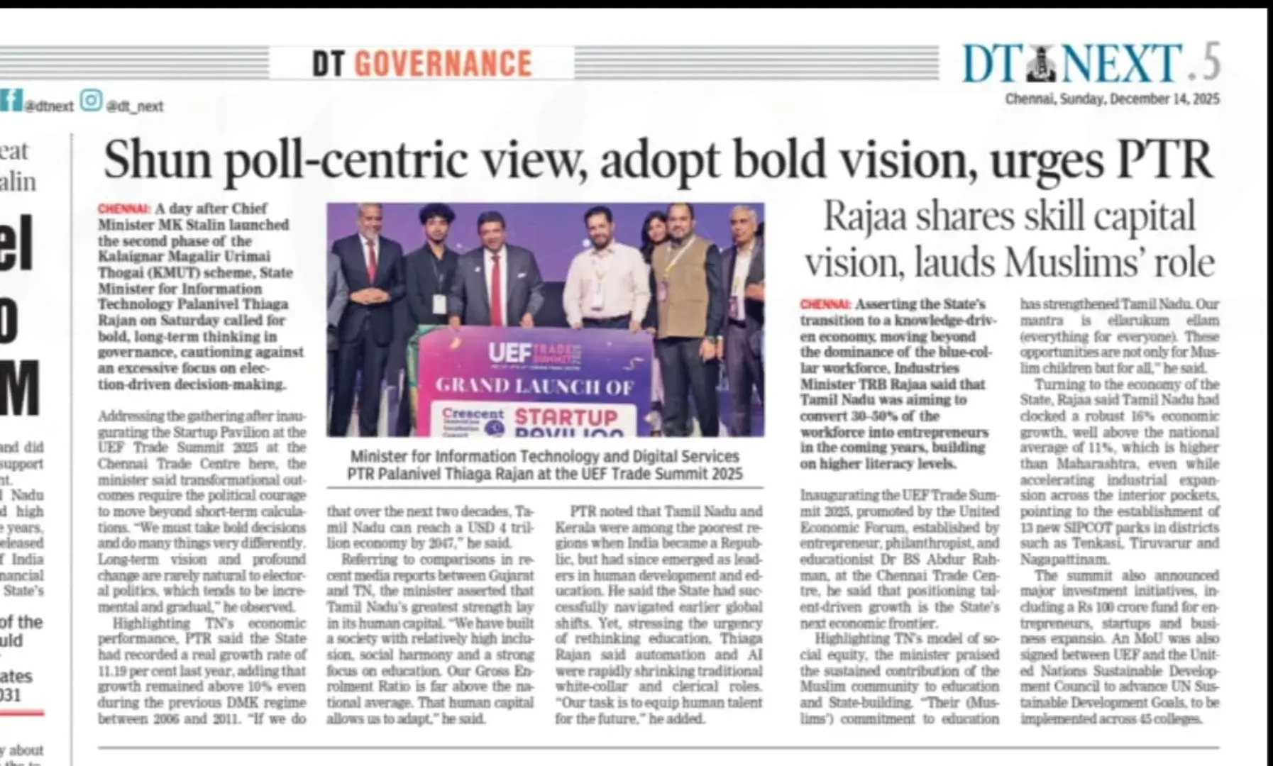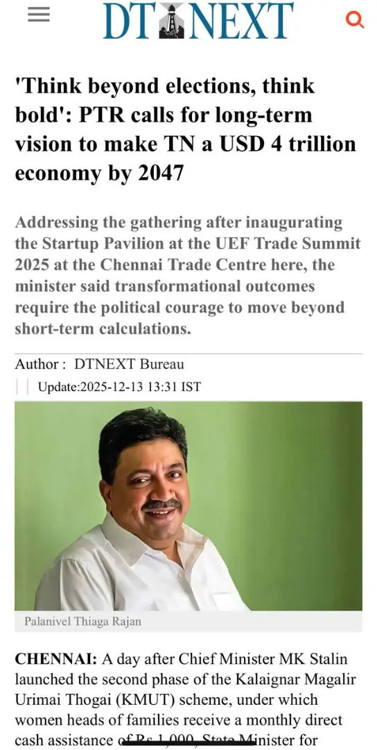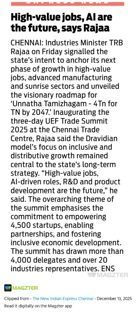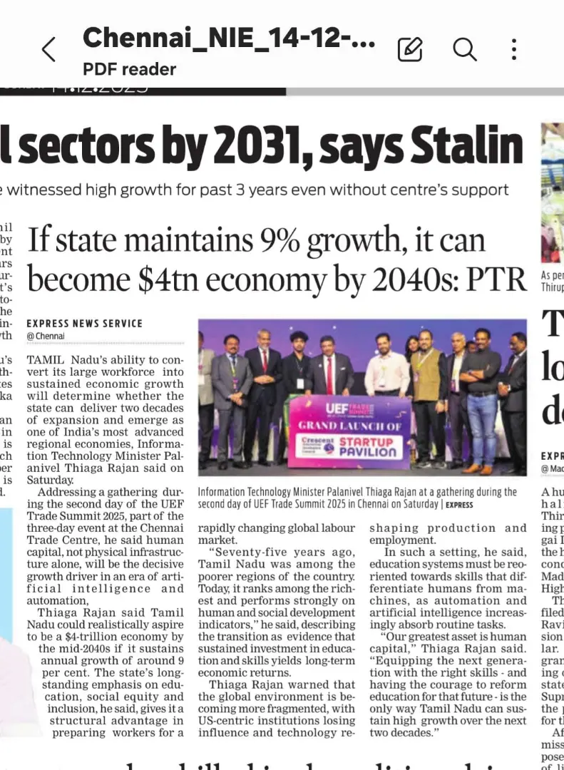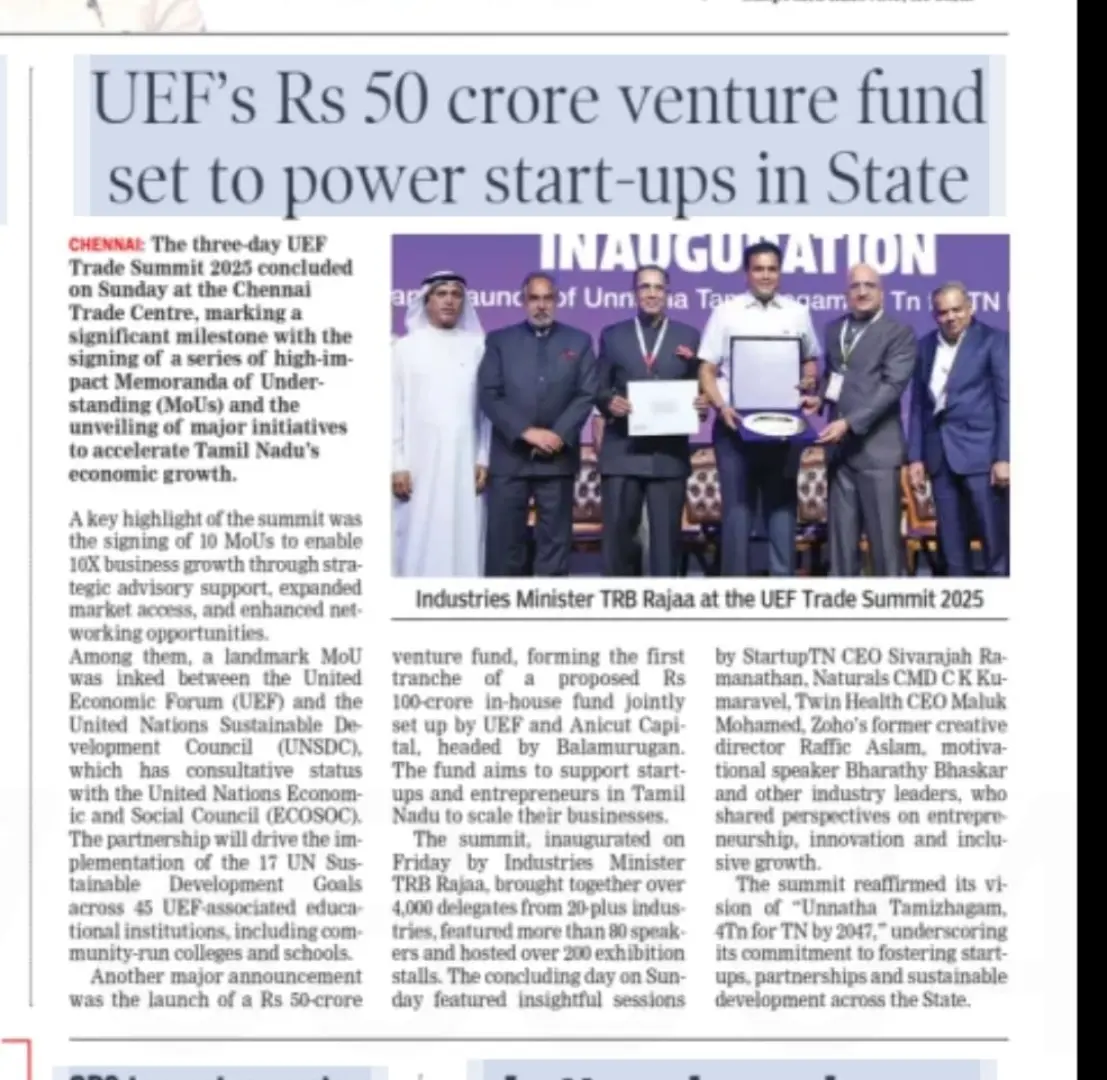 UEF Trade Summit 2025 Inaugurated by Thiru TRB Rajaa, Hon’ble Minister for Industries, GoTN, and Presided Over by Dr. Palanivel Thiagarajan, Hon’ble Minister for IT & Digital Services, GoTN, Showcasing the Vision of ‘Unnatha Tamizhagam – 4TN for TN by 2047’ | Media Coverage