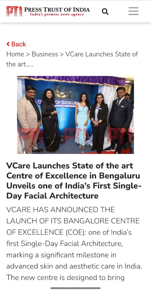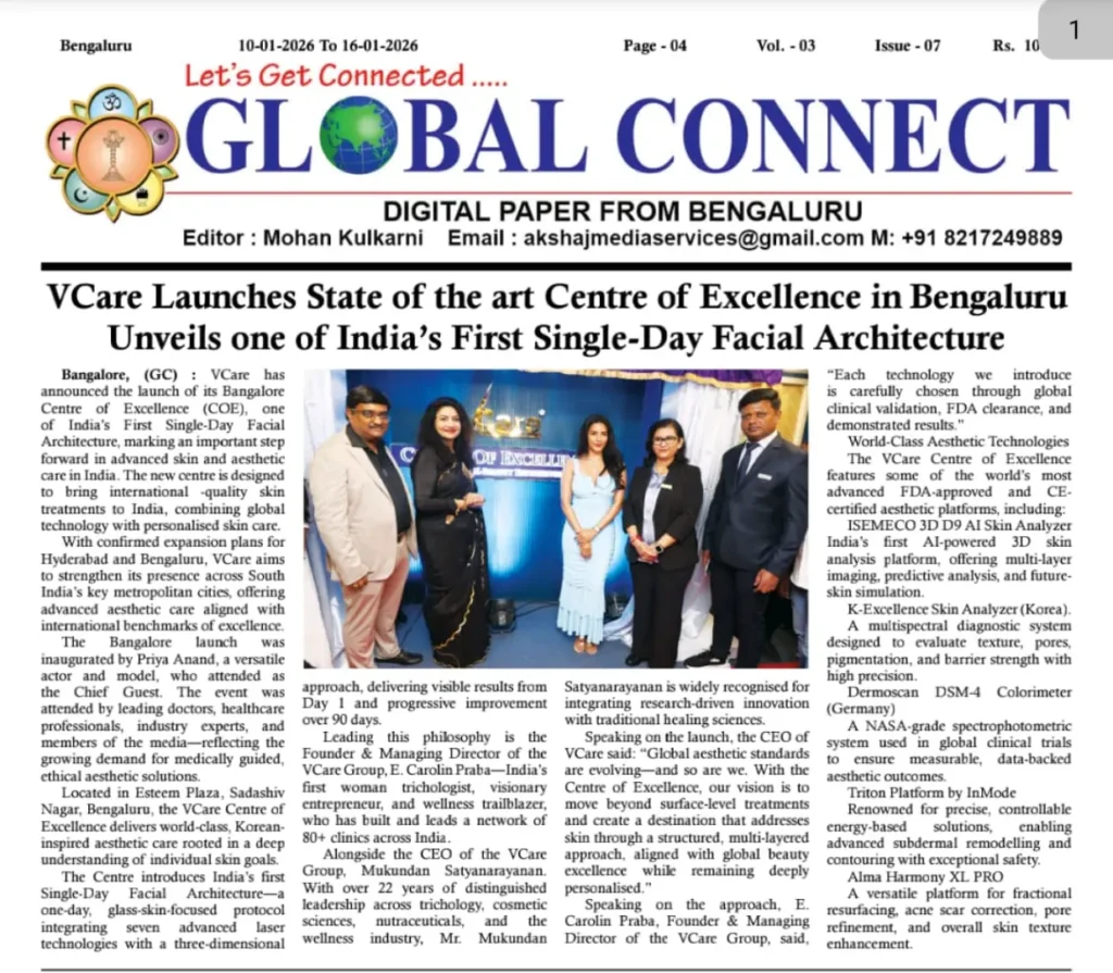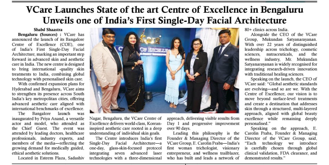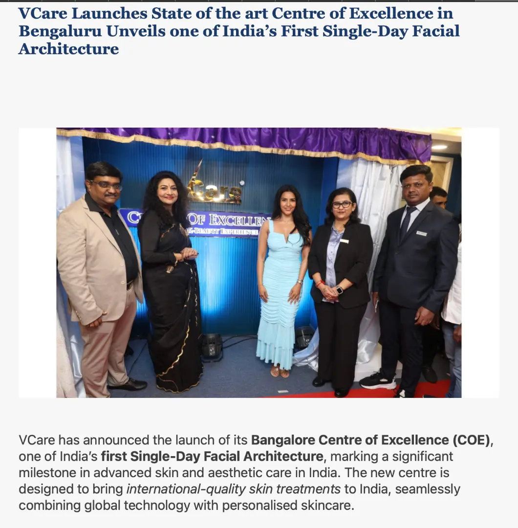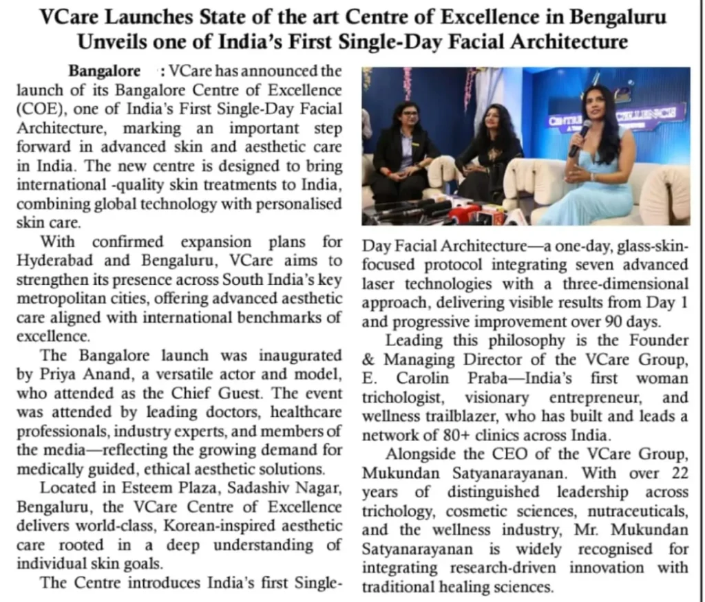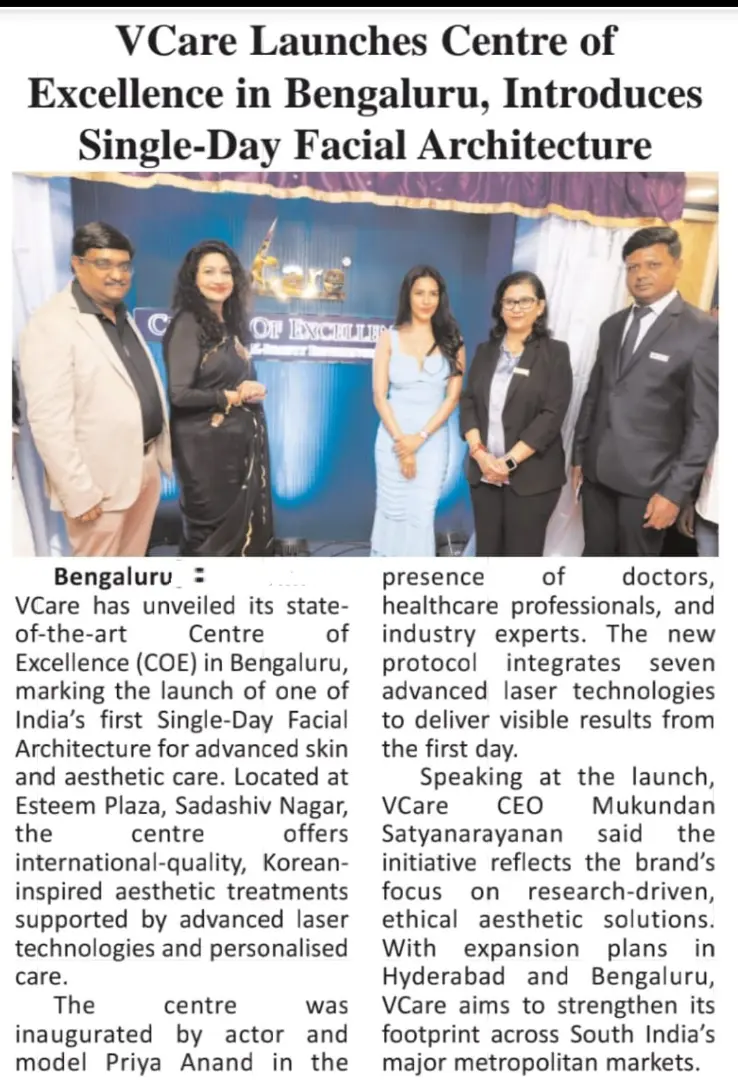 VCare Launches State of the Art Centre of Excellence in Bengaluru Unveils one of India’s First Single-Day Facial Architecture – Media Coverage