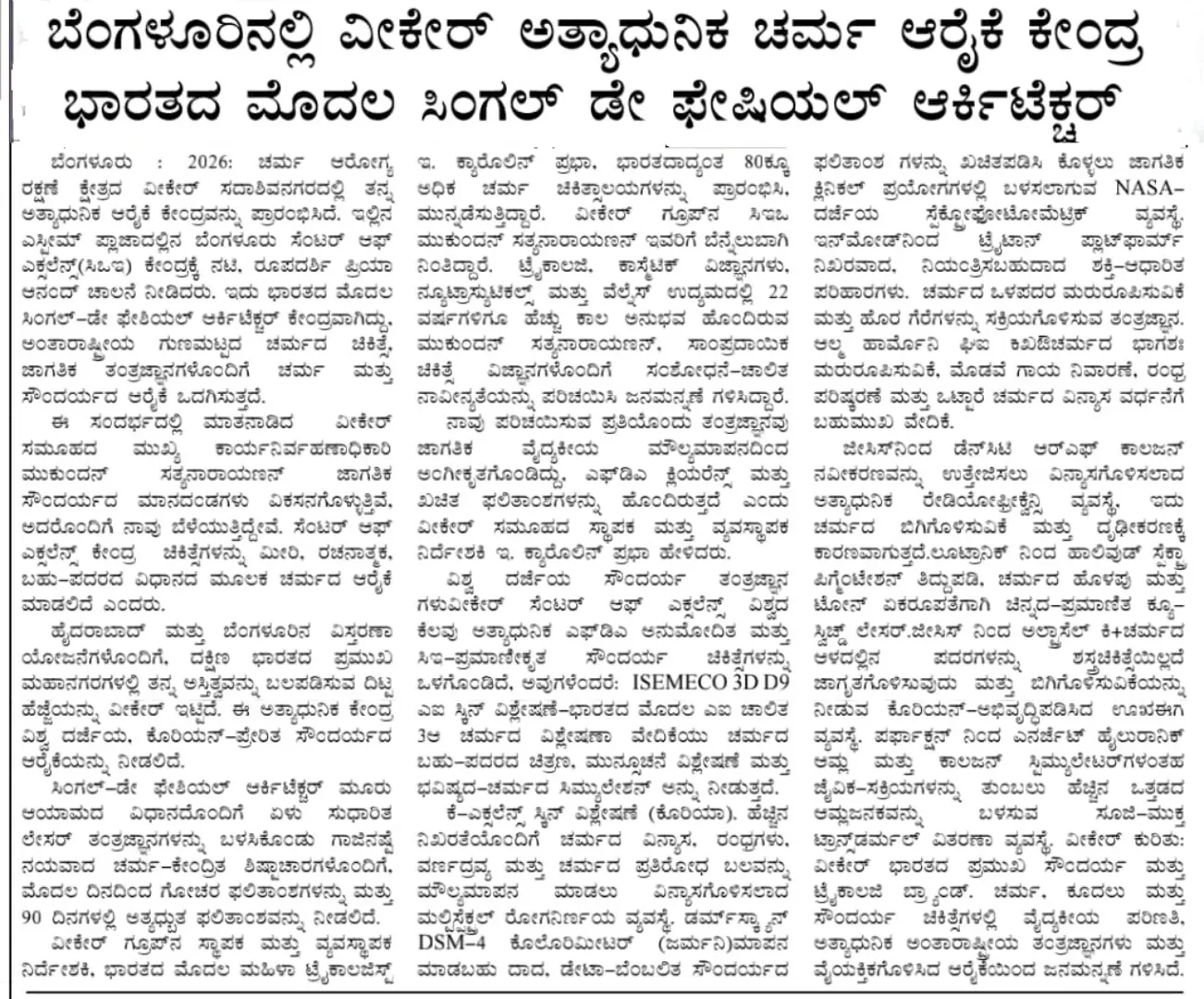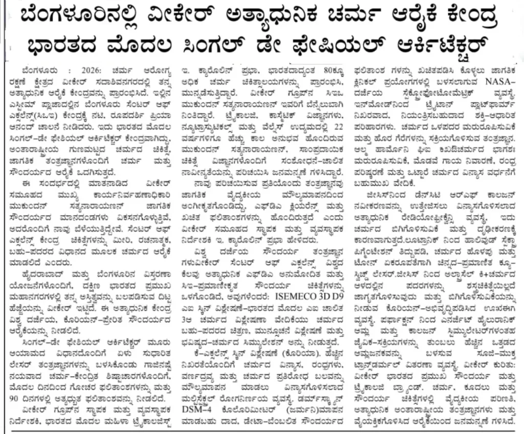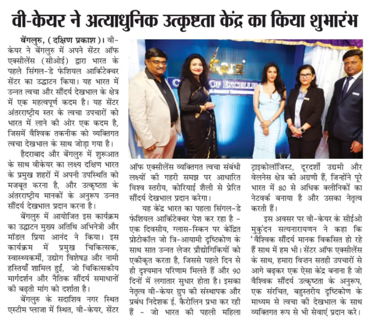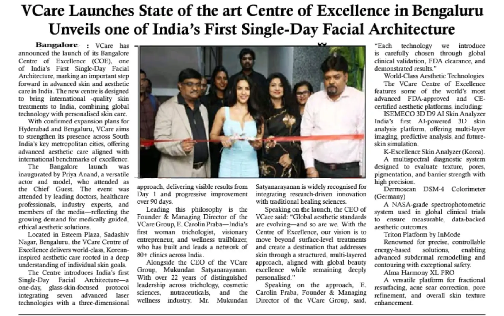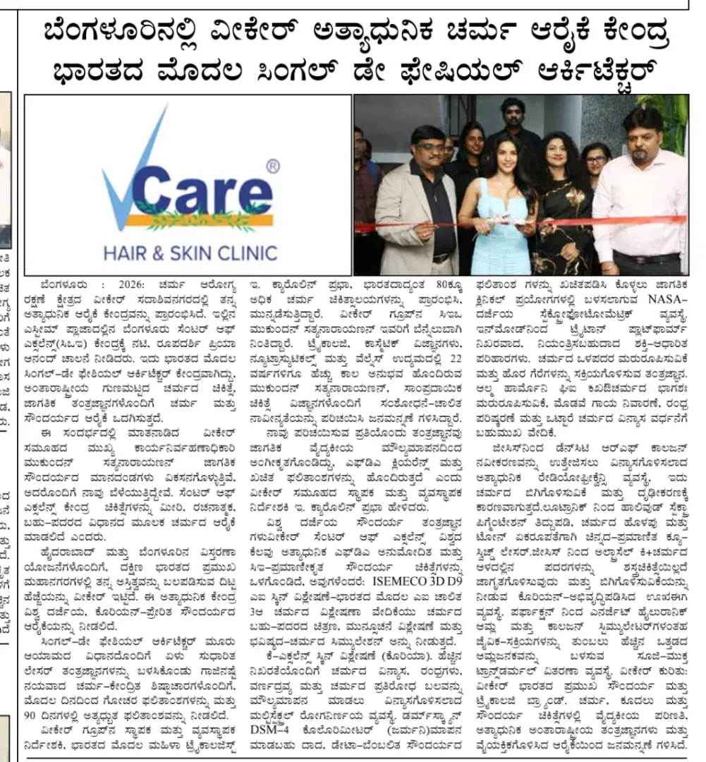 VCare Launches State of the Art Centre of Excellence in Bengaluru Unveils one of India’s First Single-Day Facial Architecture – Media Coverage