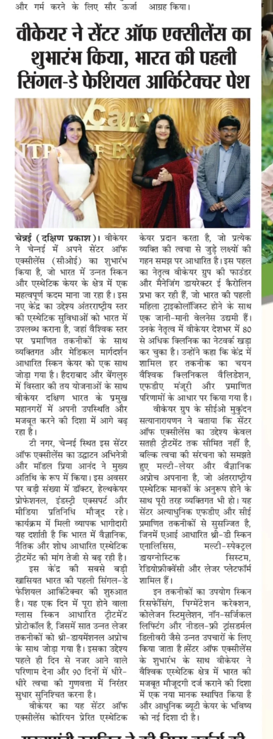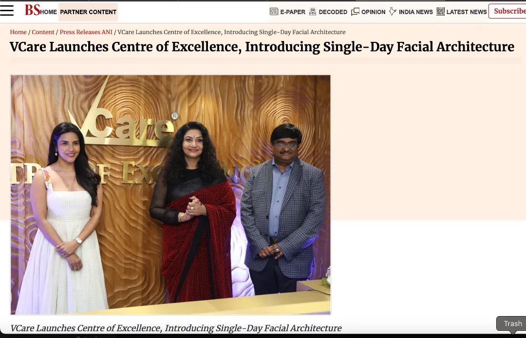 VCare Launches Centre of Excellence Introducing India’s First Single-Day Facial Architecture