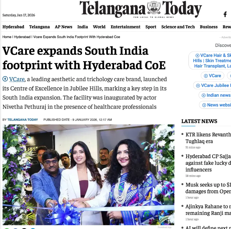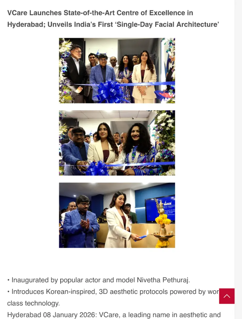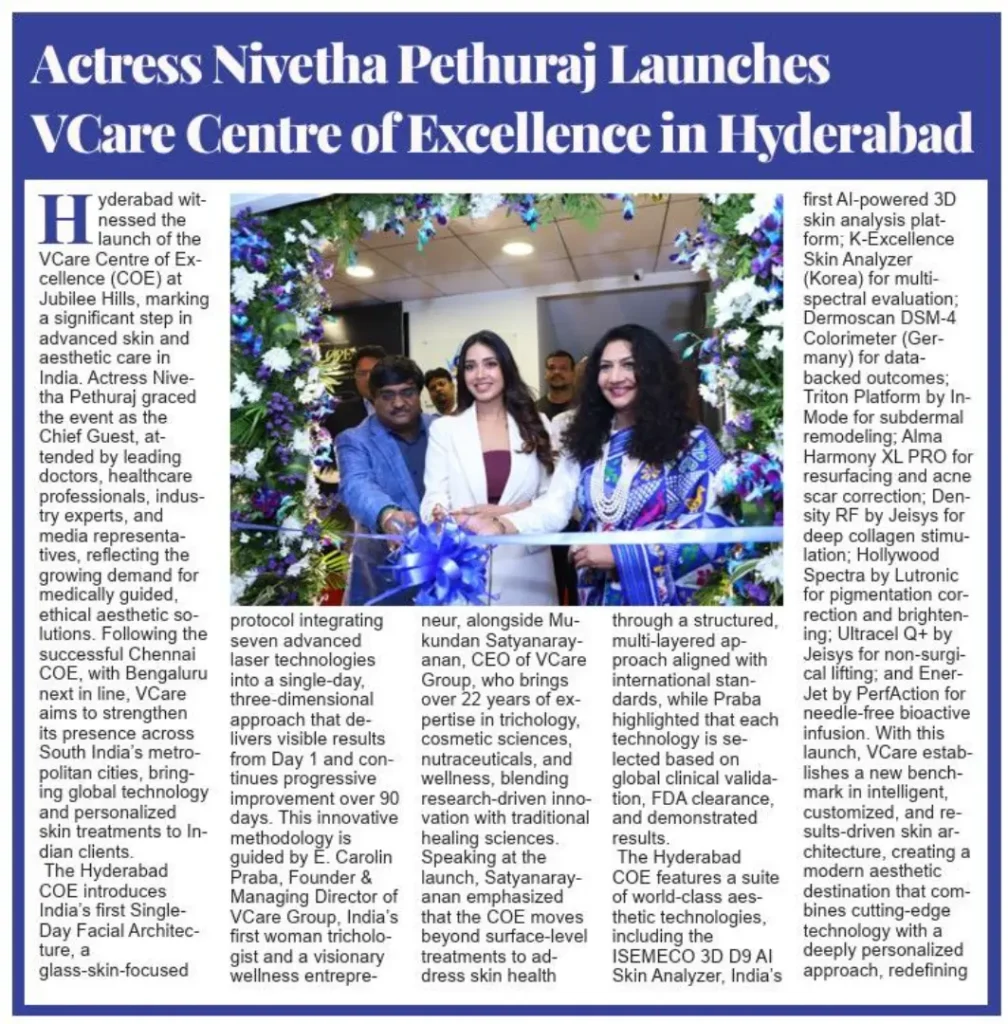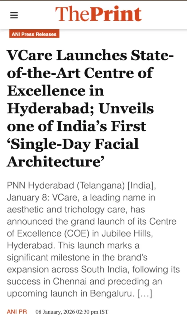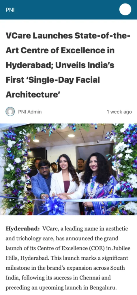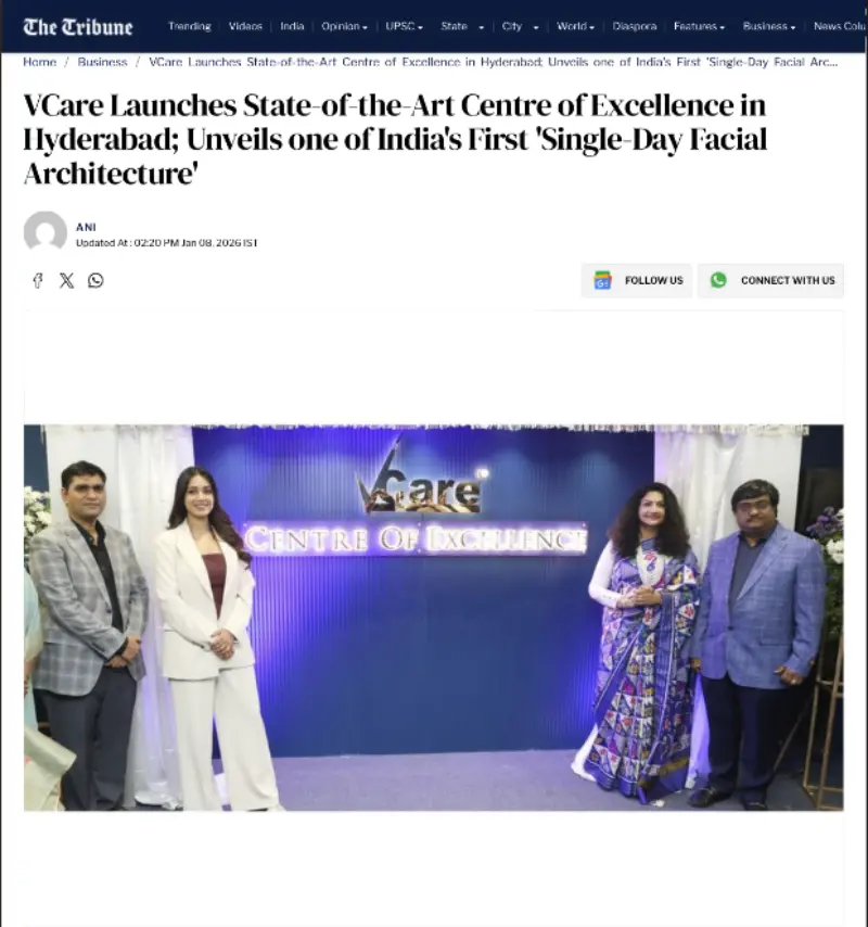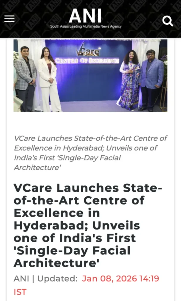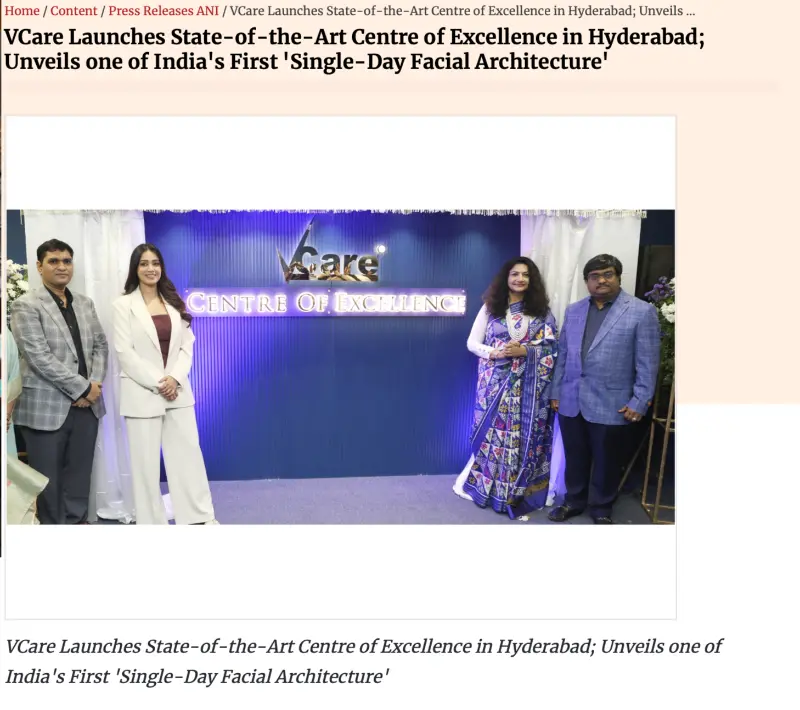 VCare Launches State-of-the-Art Centre of Excellence in Hyderabad; Unveils one of India’s First ‘Single-Day Facial Architecture’ – Media Coverage