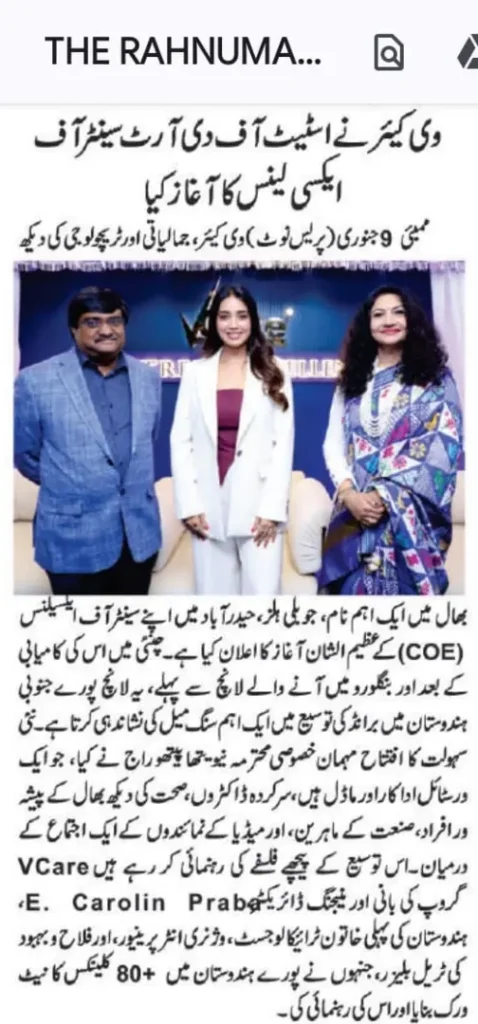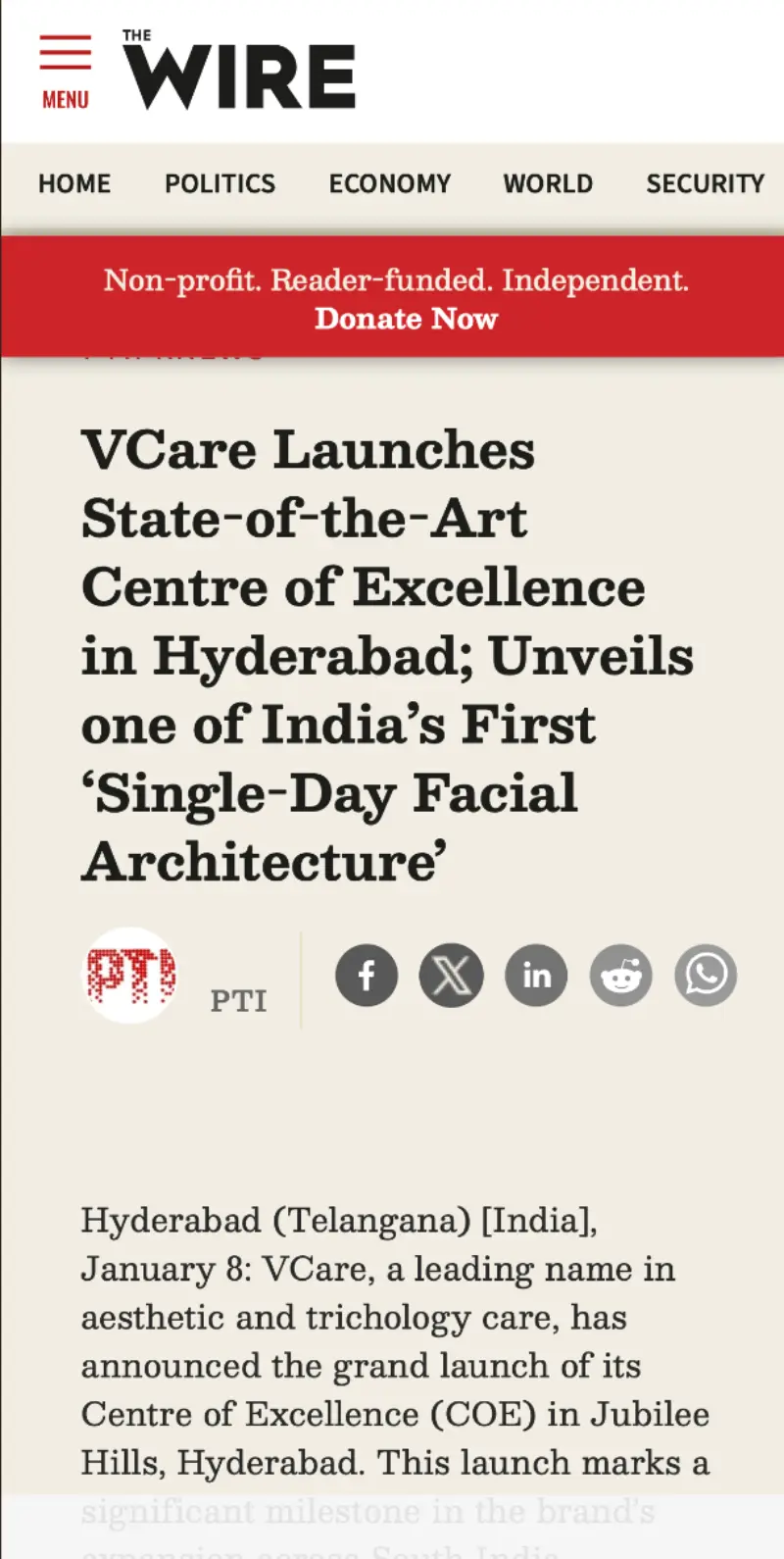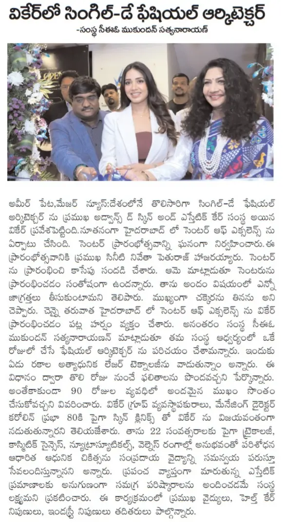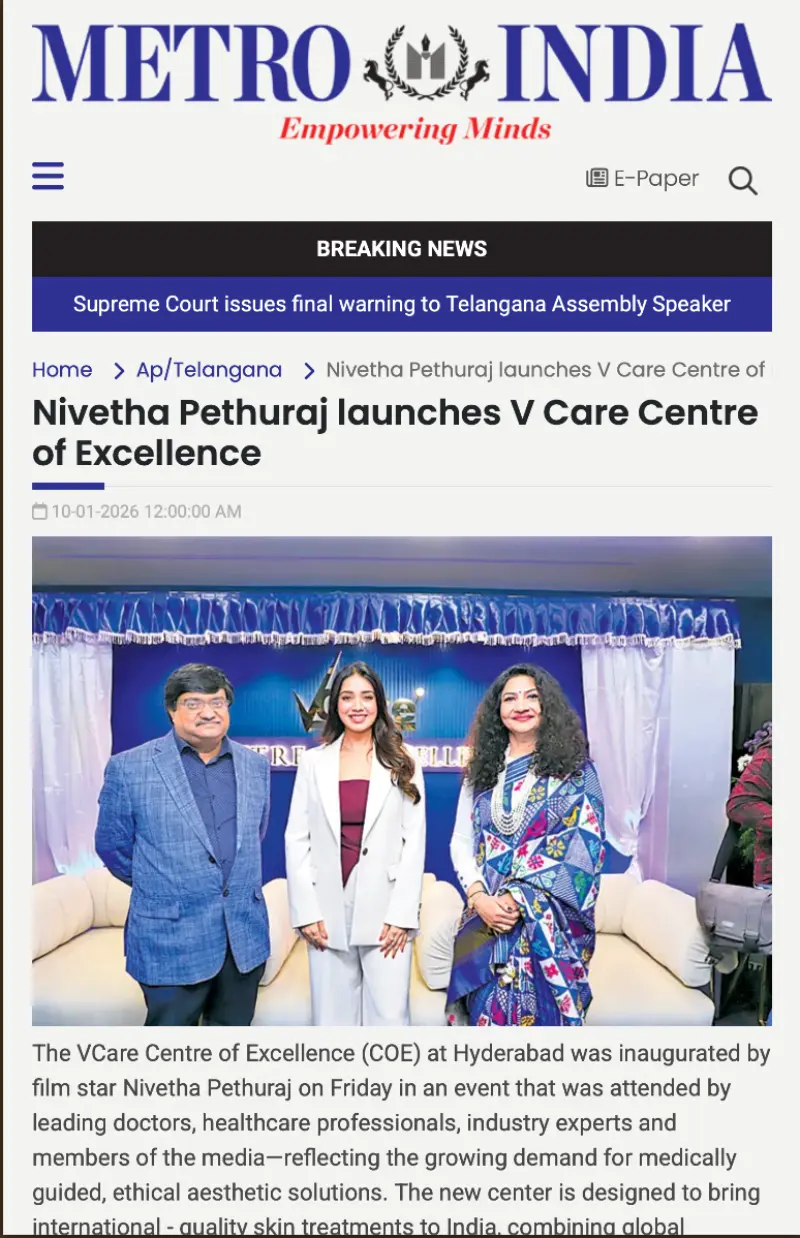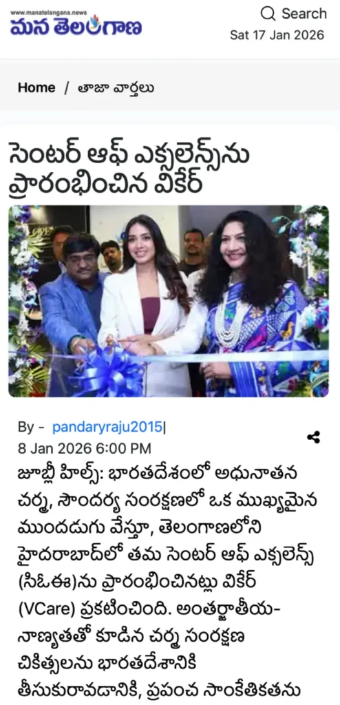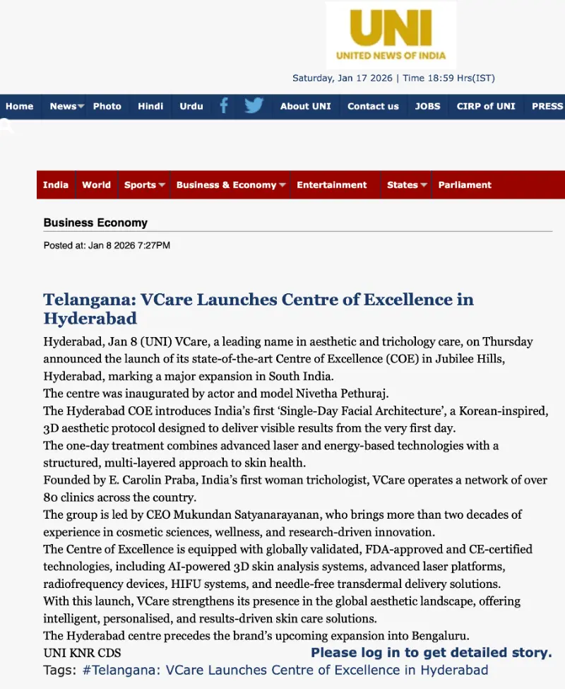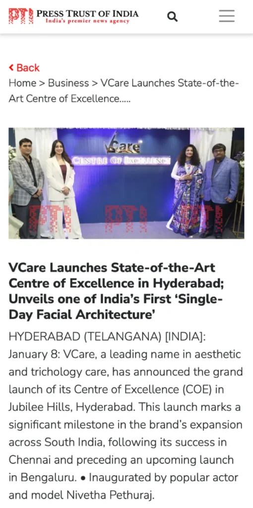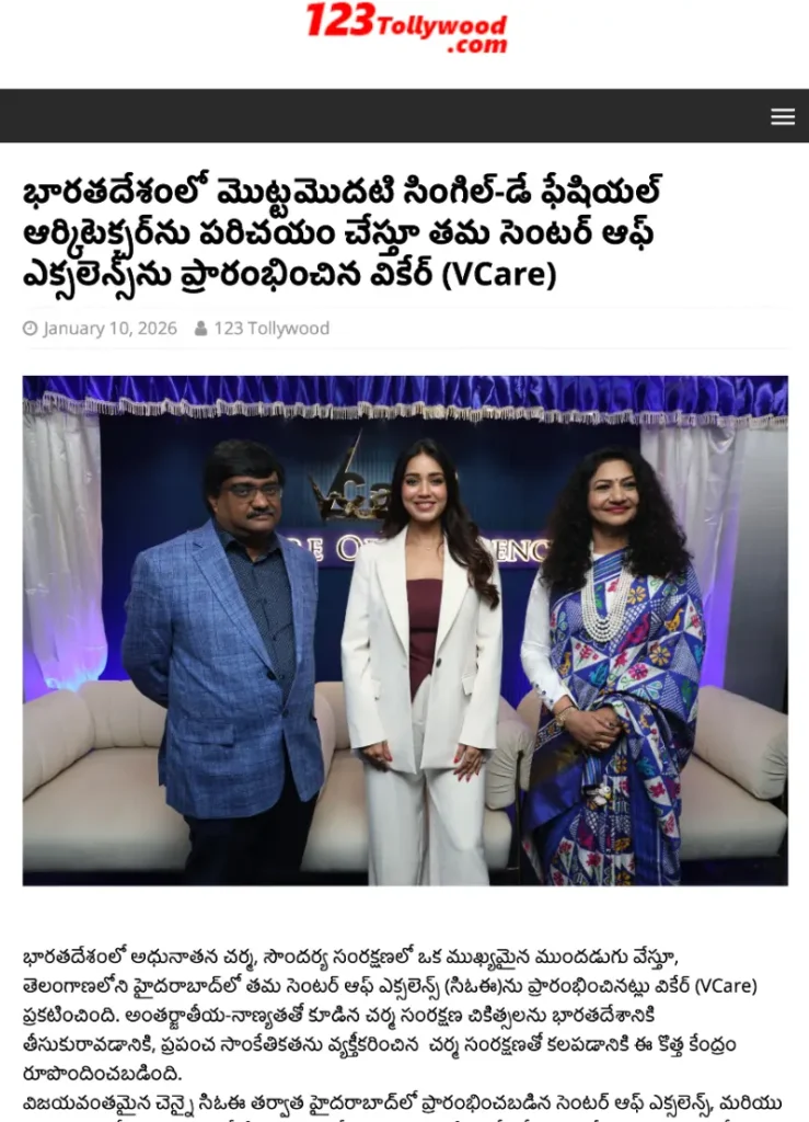 VCare Launches State-of-the-Art Centre of Excellence in Hyderabad; Unveils one of India’s First ‘Single-Day Facial Architecture’ – Media Coverage