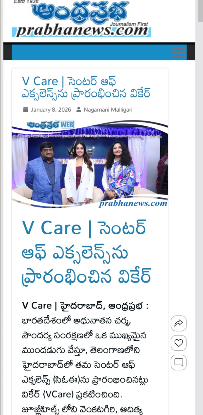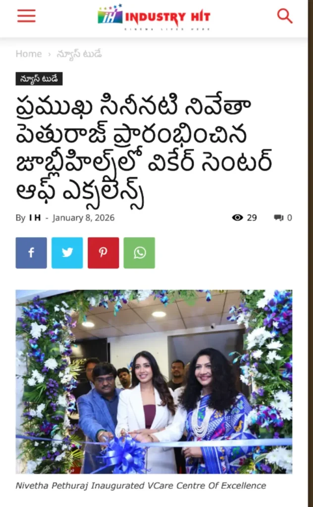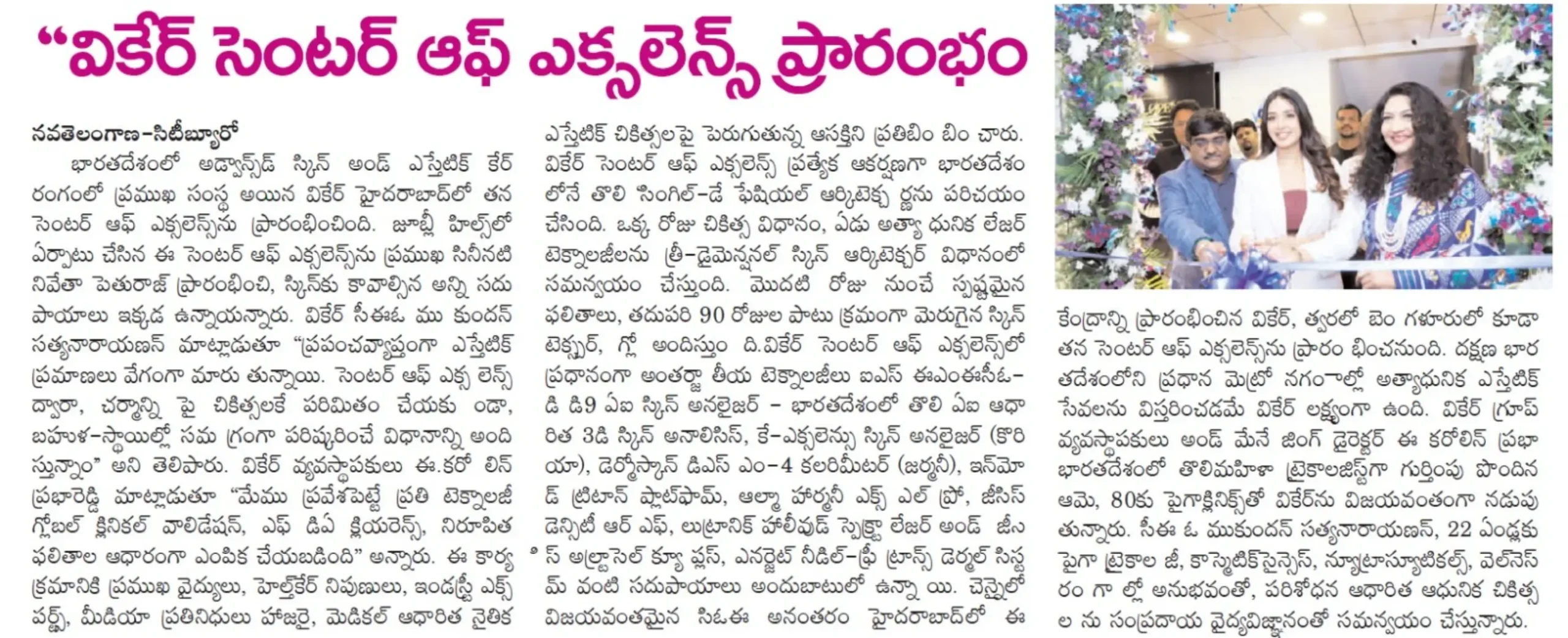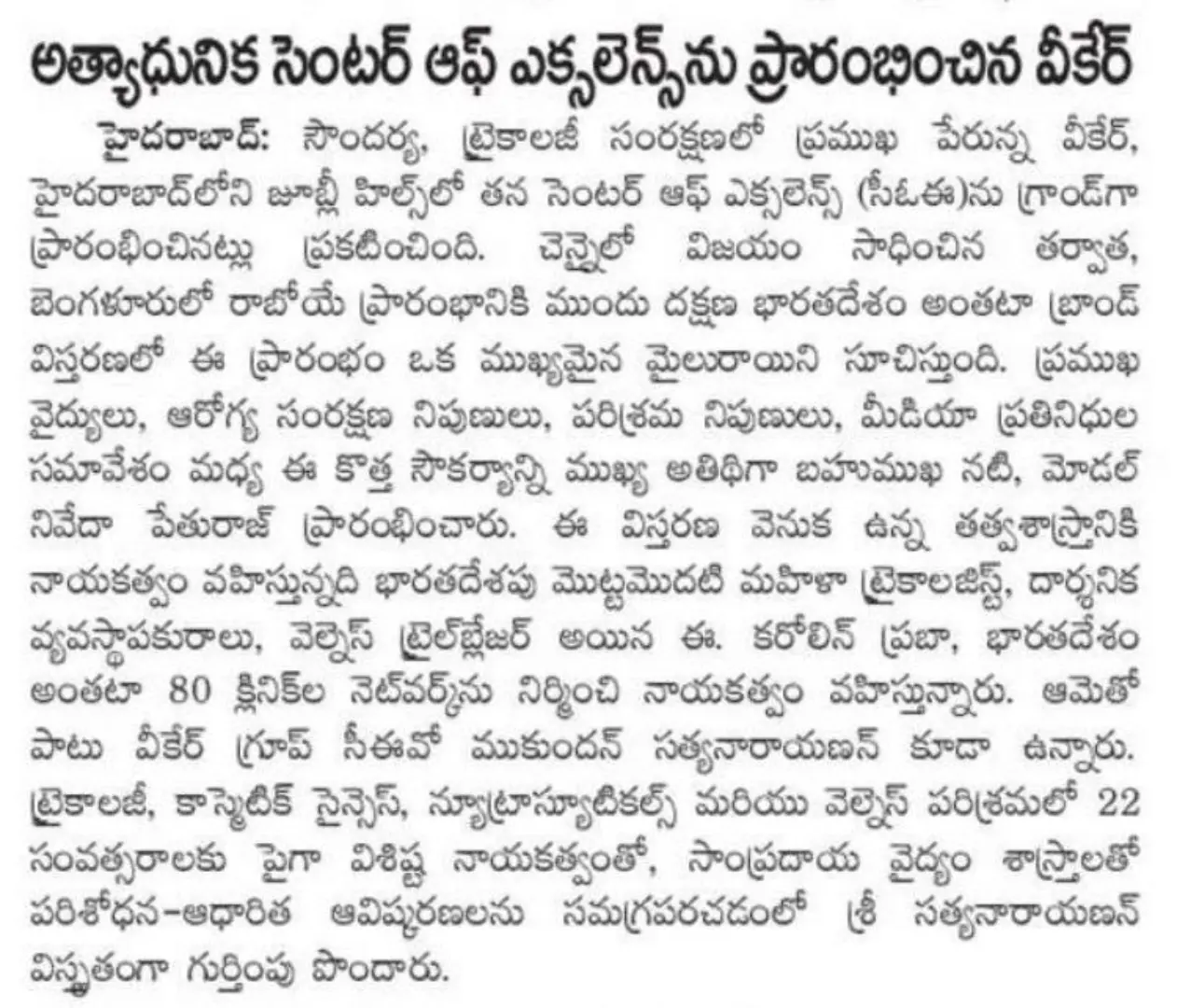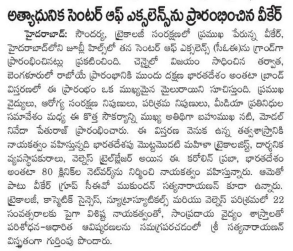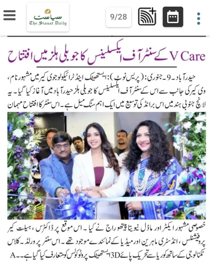 VCare Launches State-of-the-Art Centre of Excellence in Hyderabad; Unveils one of India’s First ‘Single-Day Facial Architecture’ – Media Coverage